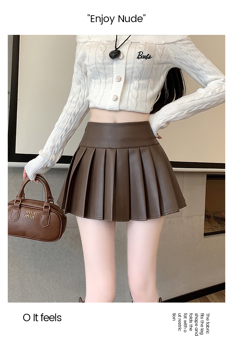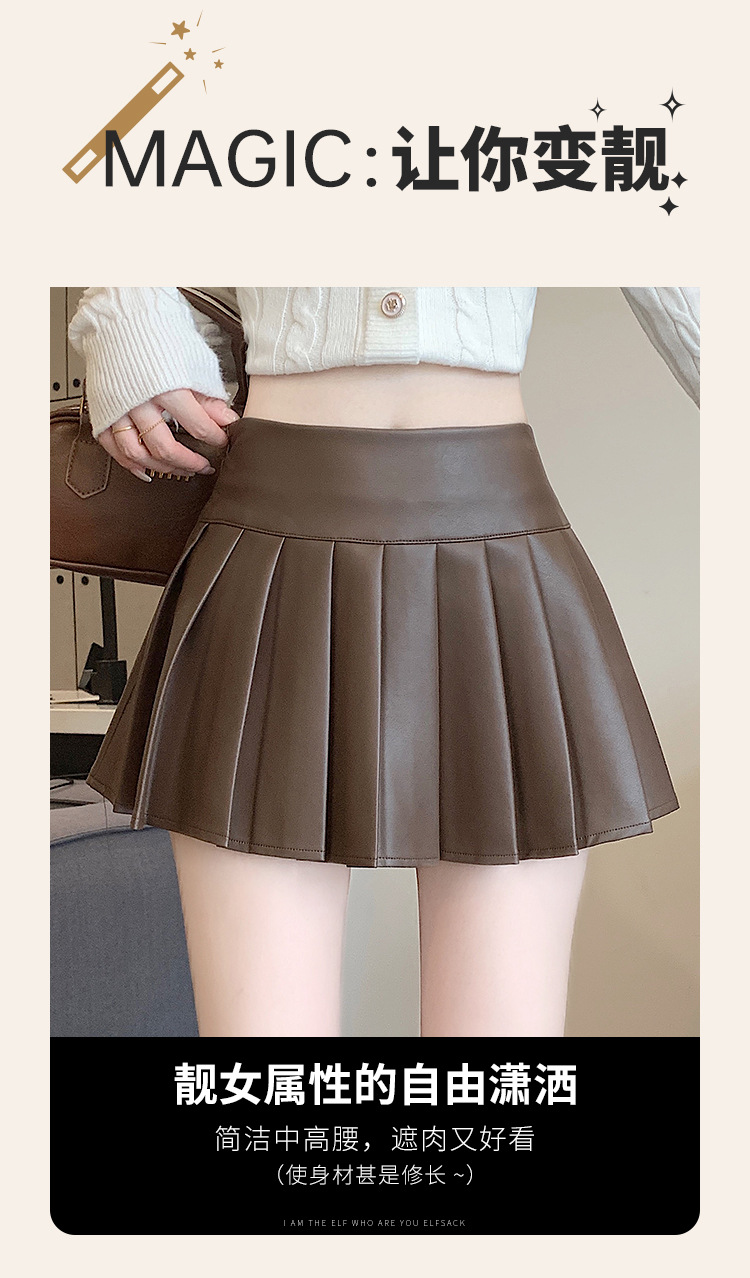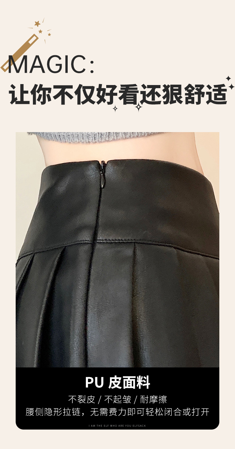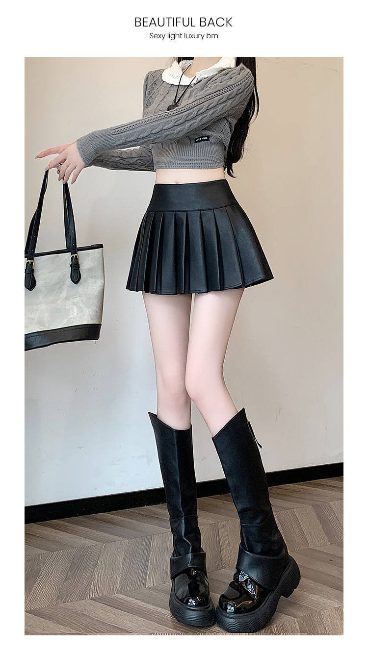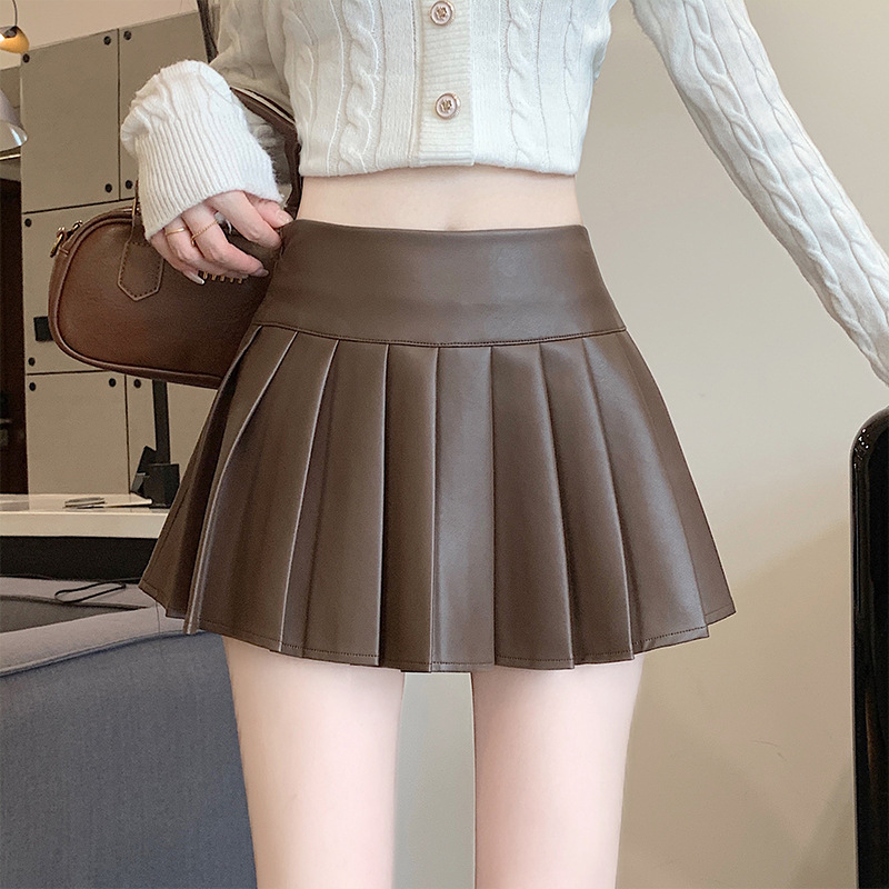 가죽 플리츠 스커트 2024 가을 겨울 핫걸 짧은 스커트 하이 웨이스트 슬리밍 미니 스커트스토어 가기