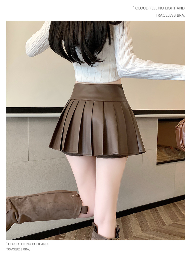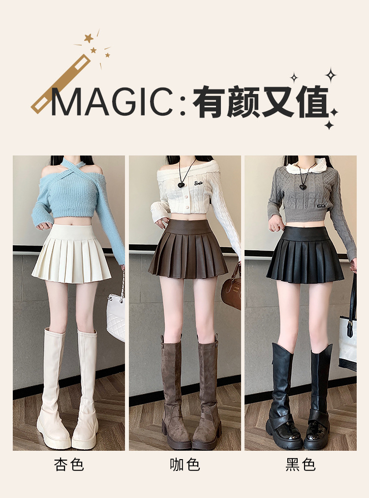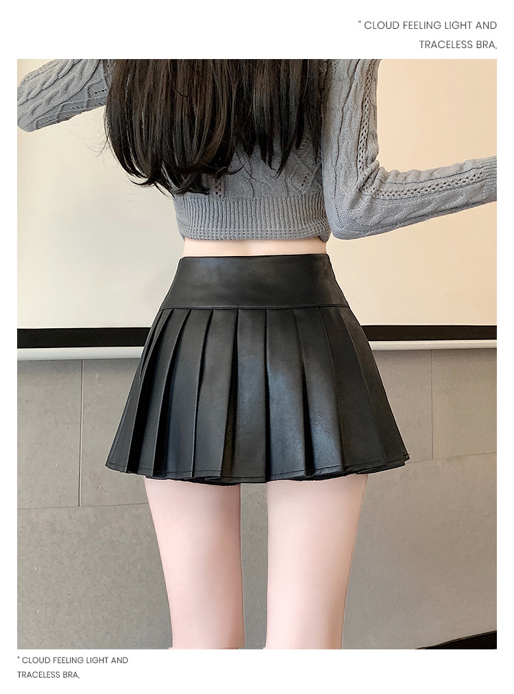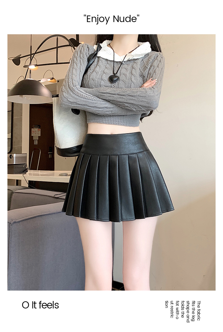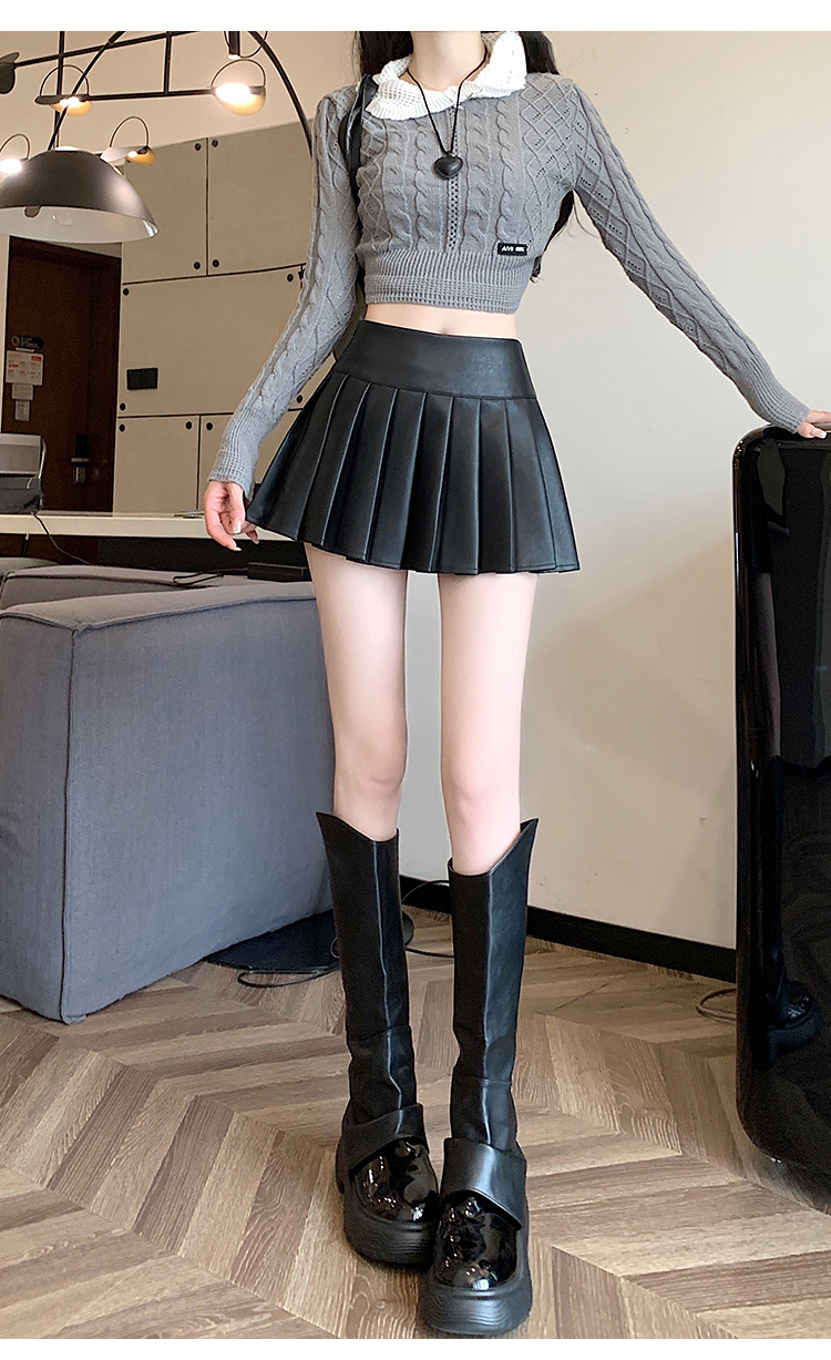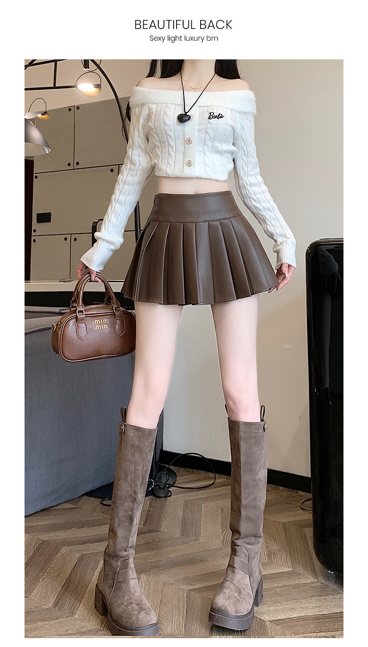 가죽 플리츠 스커트 2024 가을 겨울 핫걸 짧은 스커트 하이 웨이스트 슬리밍 미니 스커트스토어 가기