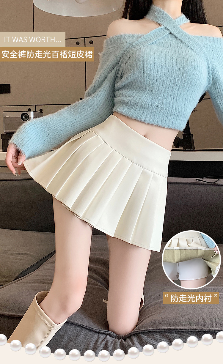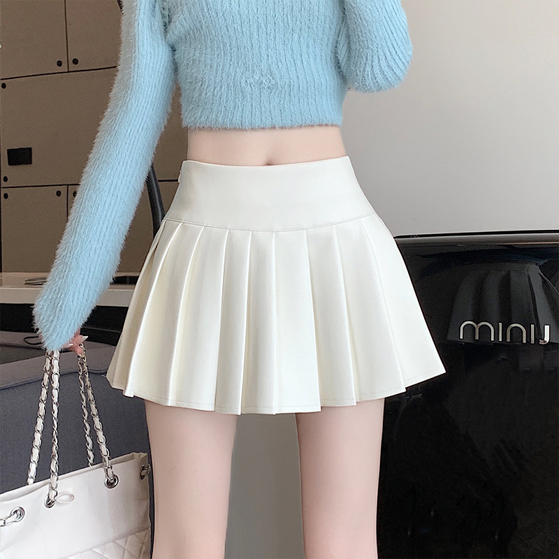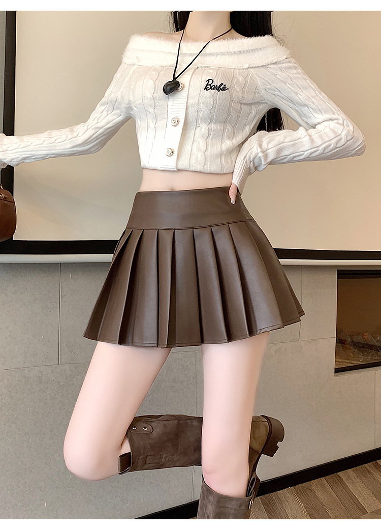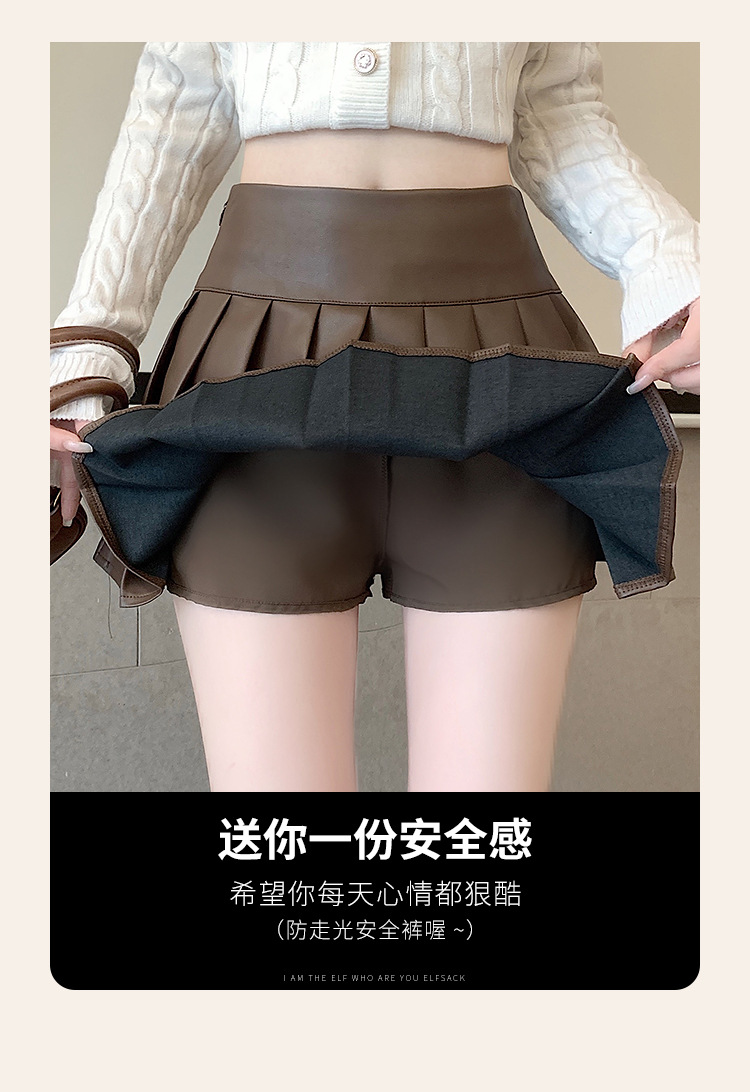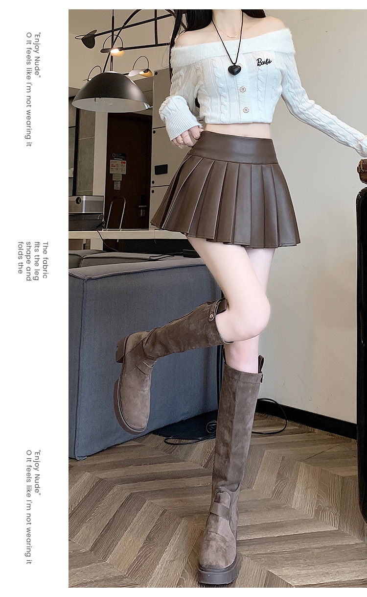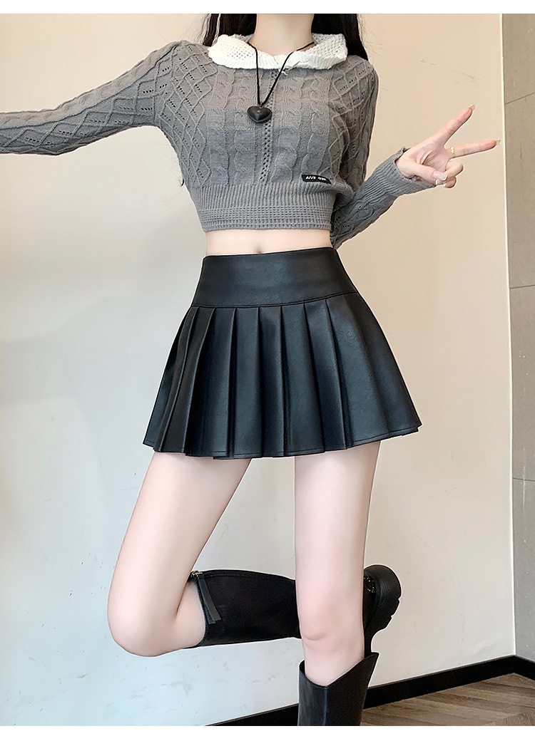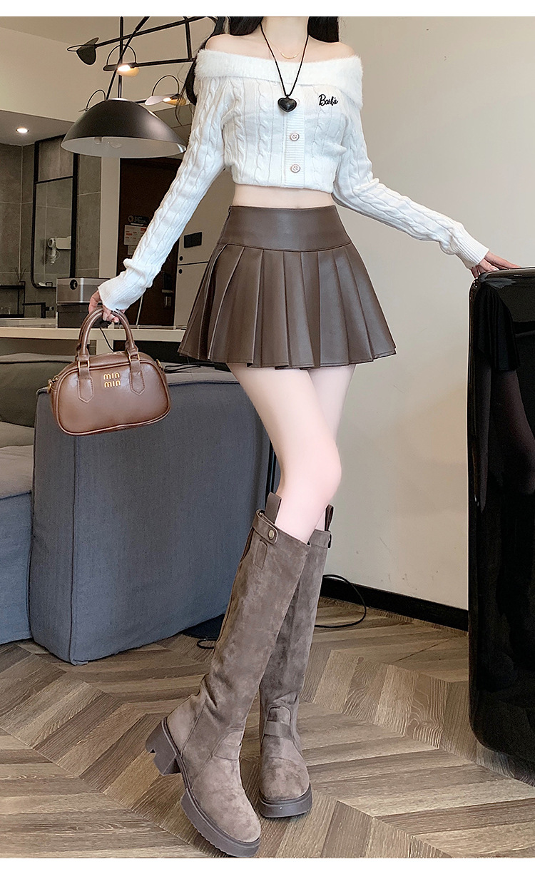 가죽 플리츠 스커트 2024 가을 겨울 핫걸 짧은 스커트 하이 웨이스트 슬리밍 미니 스커트스토어 가기