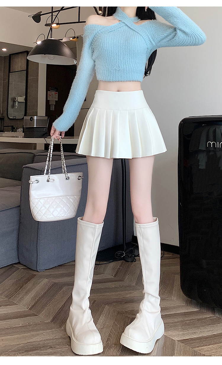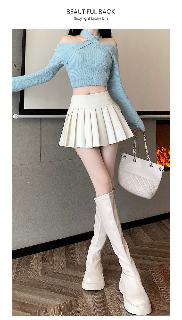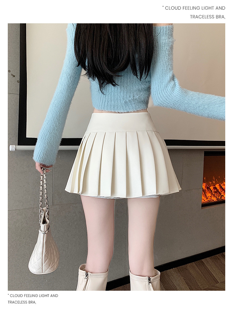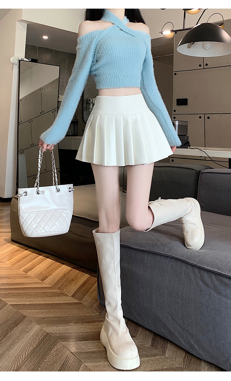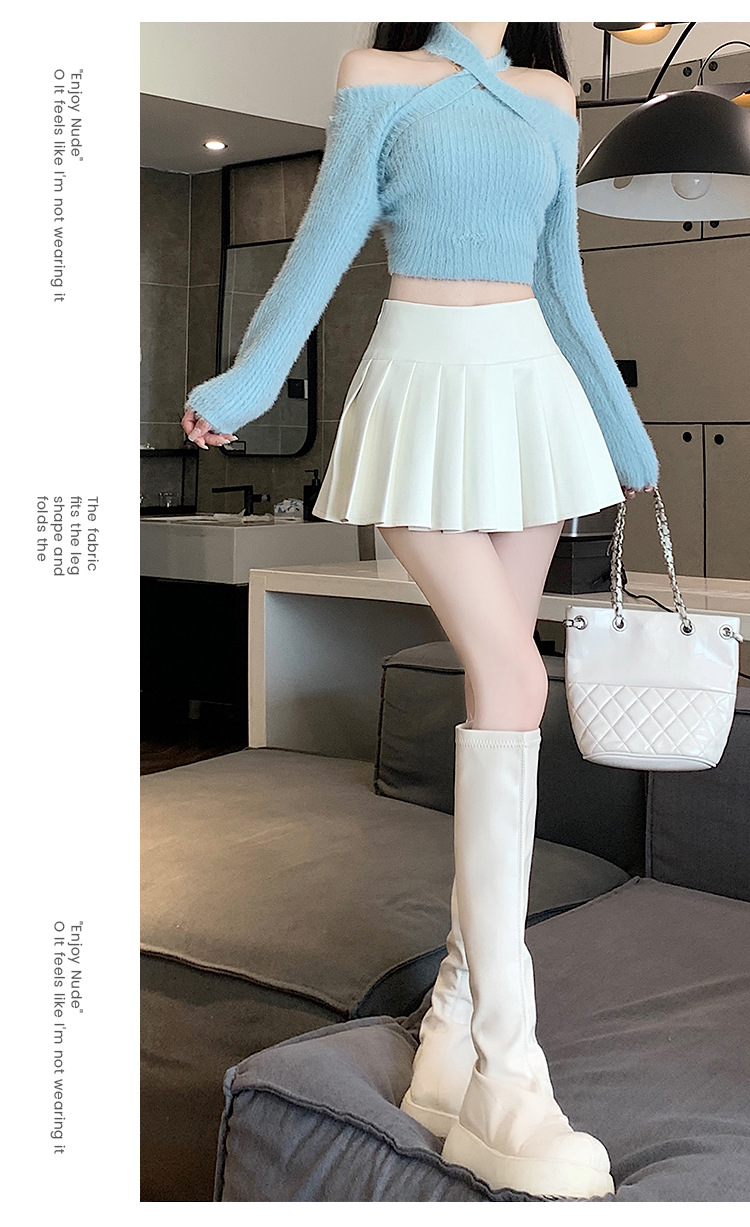 가죽 플리츠 스커트 2024 가을 겨울 핫걸 짧은 스커트 하이 웨이스트 슬리밍 미니 스커트스토어 가기