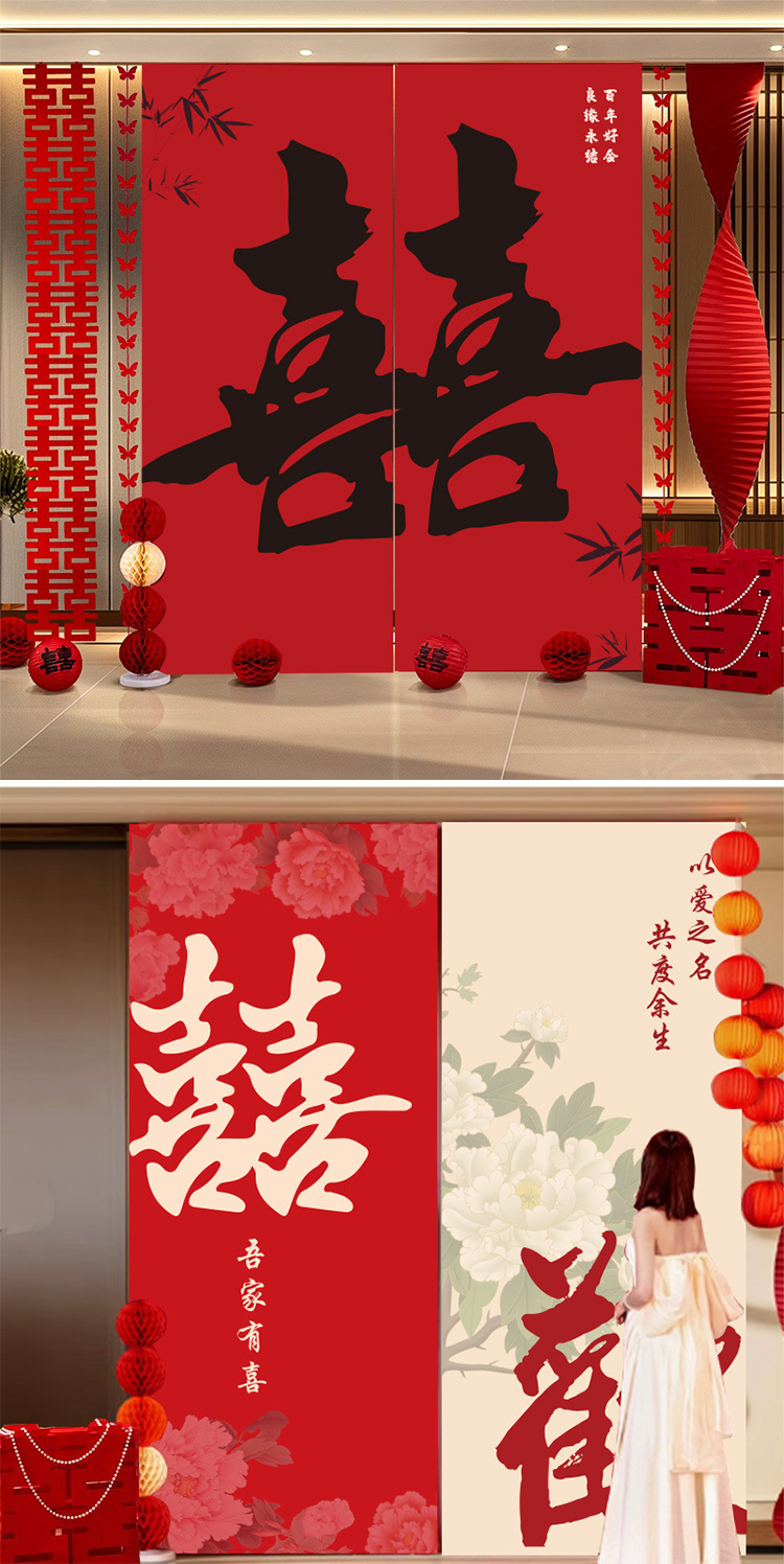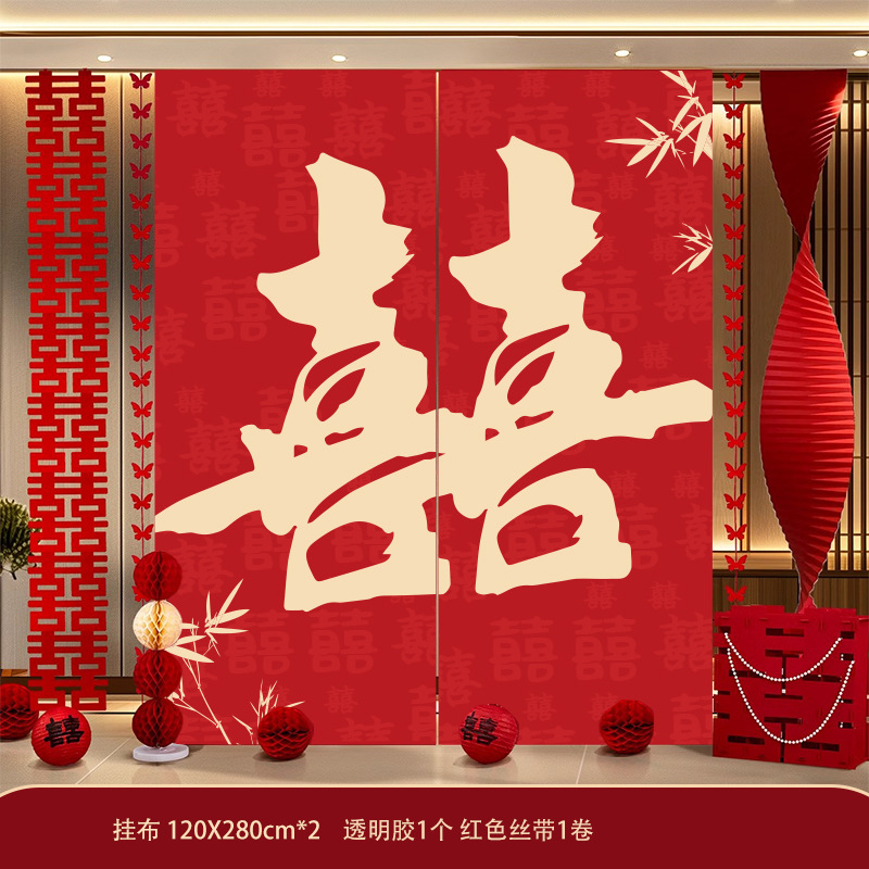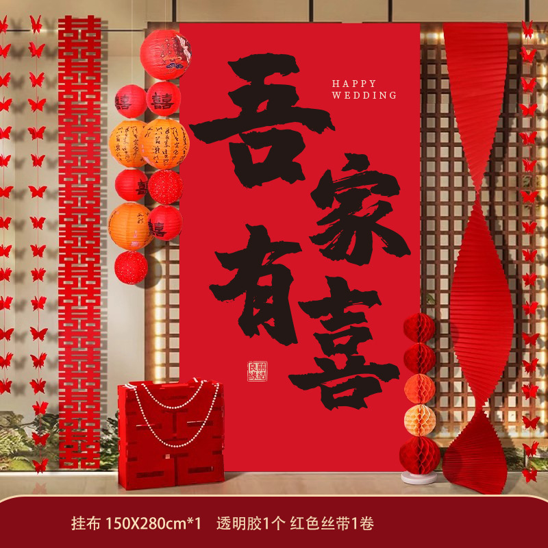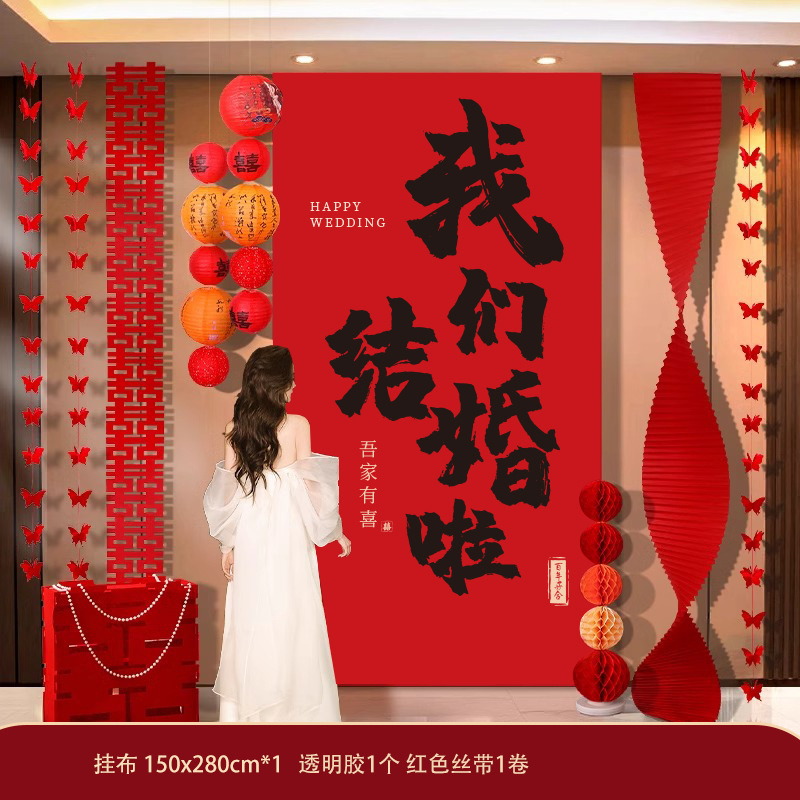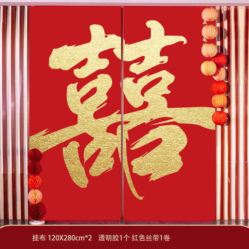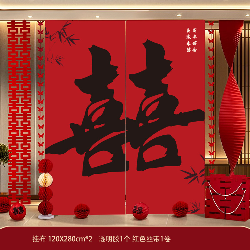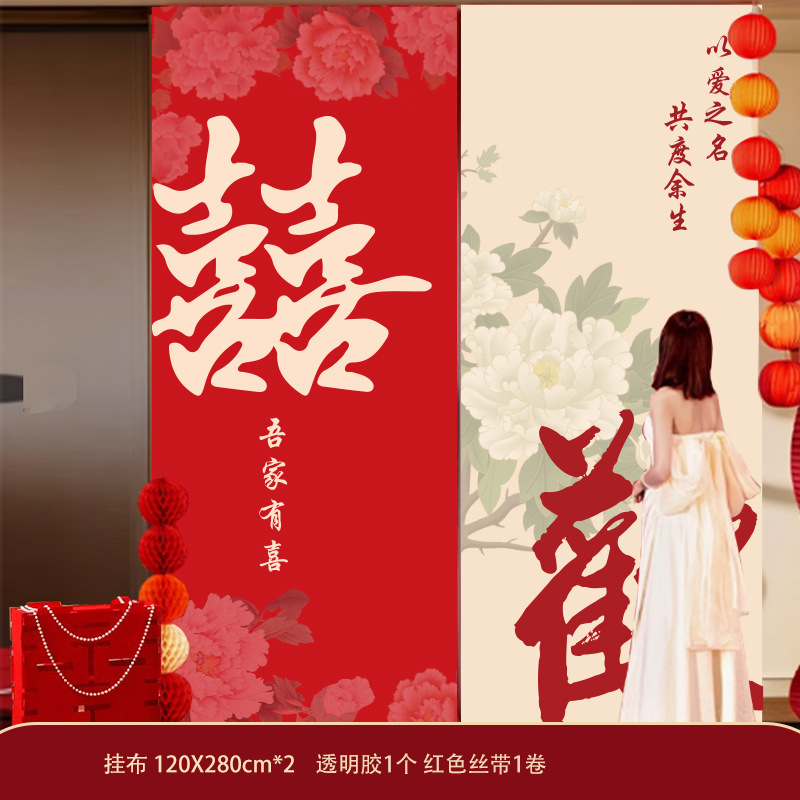 • 행복한 웨딩 장식 걸이 천 A + 투명 풀 + 레드 리본 (나머지는 사진 도구로 포함되지 않음)