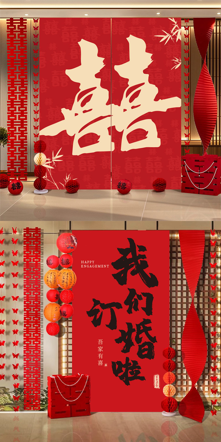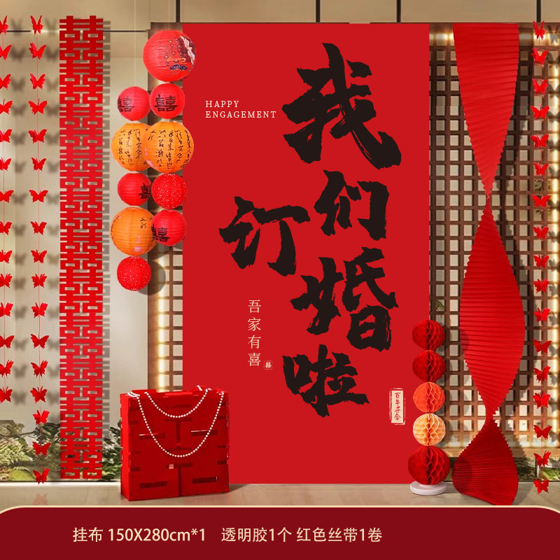 • 해피 앤 해피 약혼 장식 걸이 천 + 투명 테이프 + 빨간 리본 (나머지는 사진 도구로 포함되지 않음)