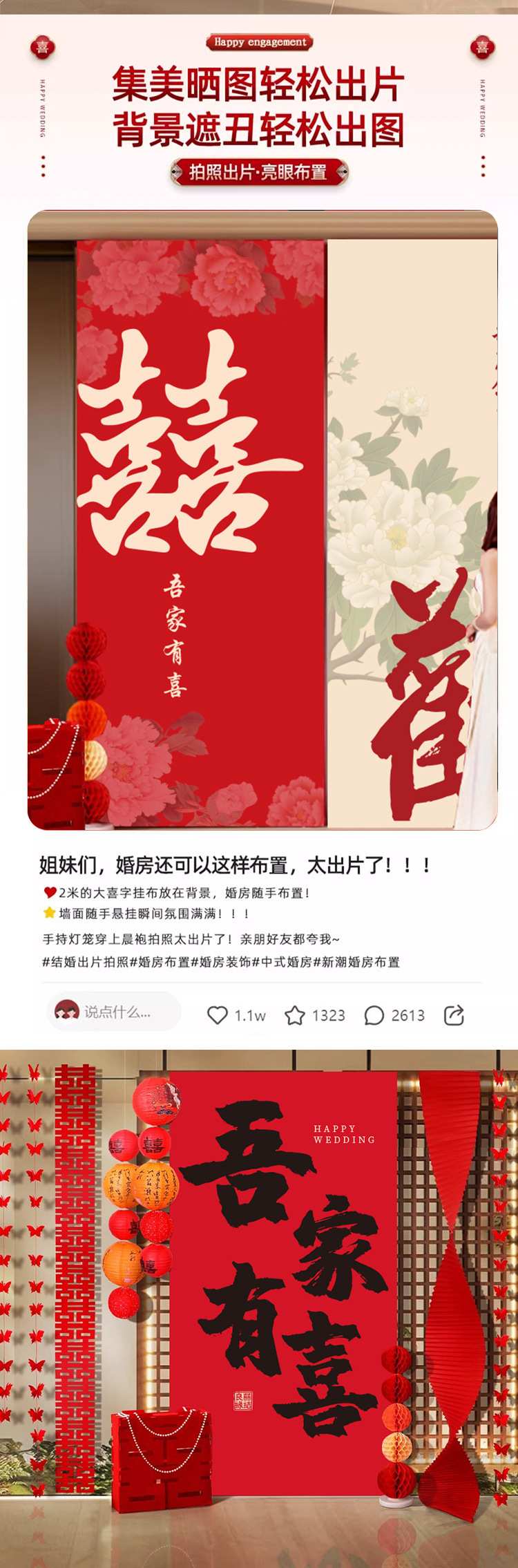 • 행복한 웨딩 장식 걸이 천 E + 투명 접착제 + 빨간 리본 (나머지는 사진 도구로 포함되지 않음)