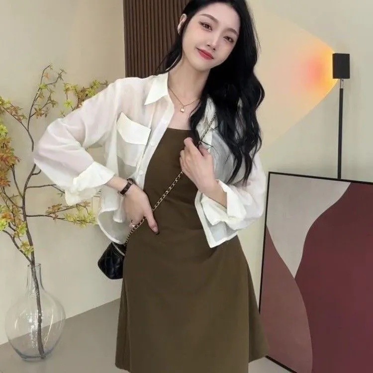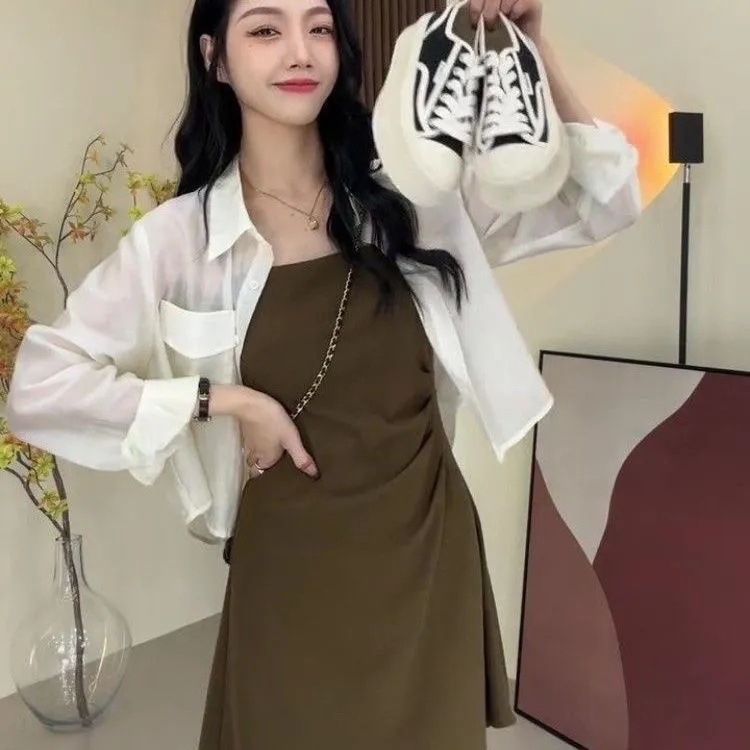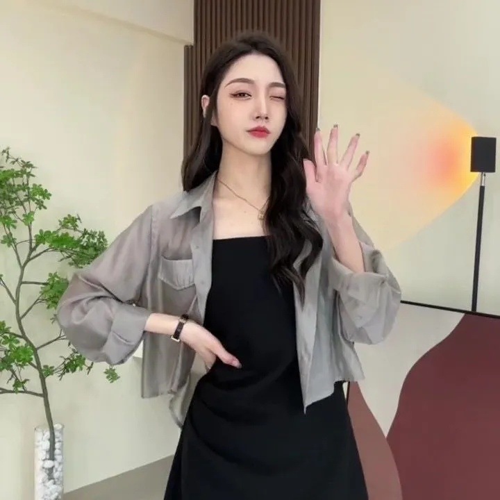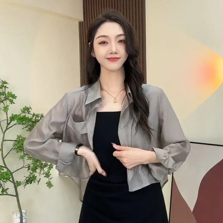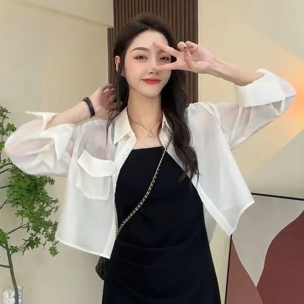 프랑스 스타일 핫 걸 온라인 연예인 프라이드 스트리트 캐주얼 여성 여름 긴팔 선 스크린 셔츠 얇은 선 스크린 의류 여성 외부 착용 짧은 셔츠