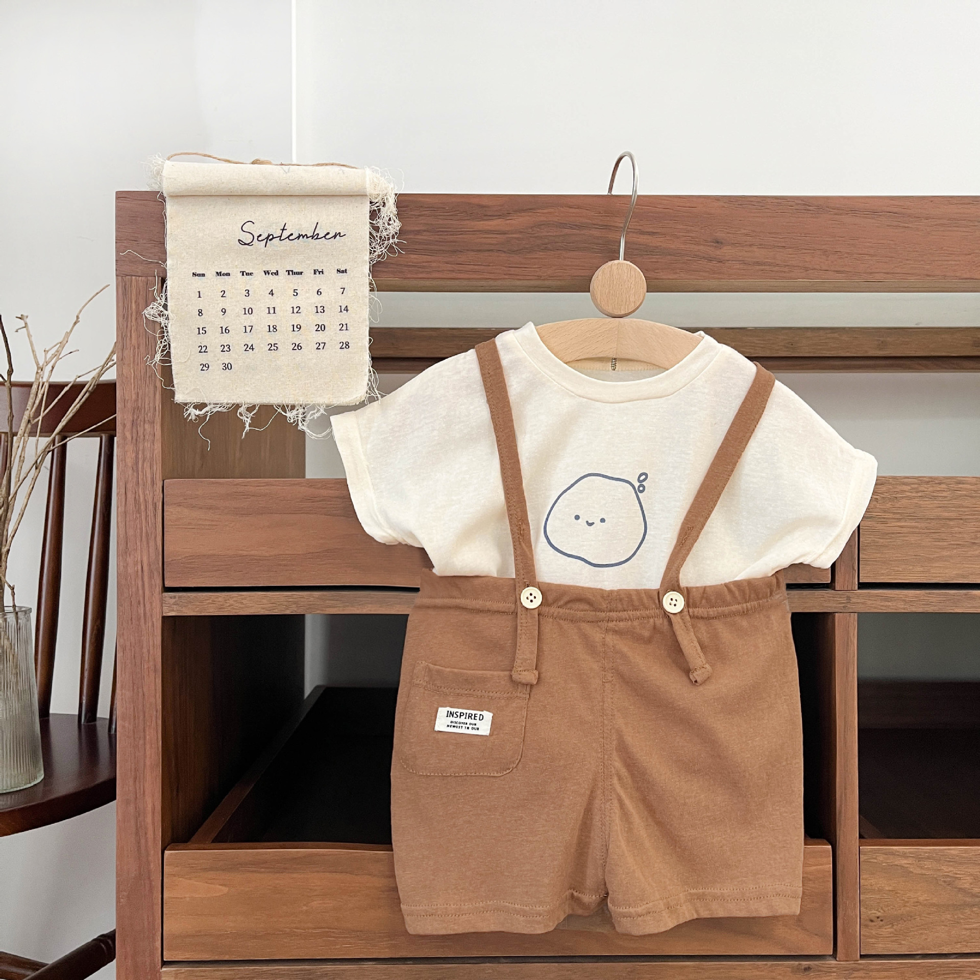 소년의 슬링 바지 여름 세트 잘 생긴 아이들의 얇은 둥근 목 반팔 티셔츠 아기의 캐주얼 반바지 투피스 세트
