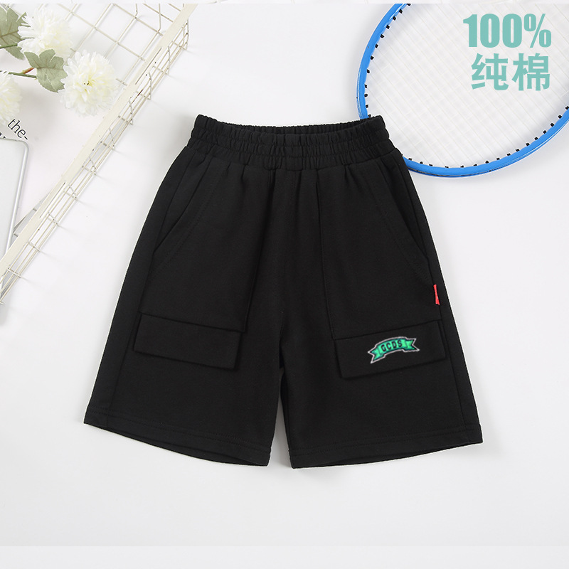 재고 소년 소녀 면 반바지 여름 얇은 어린이 5 점 바지 스포츠 어린이 착용 큰 어린이 느슨한 캐주얼 바지