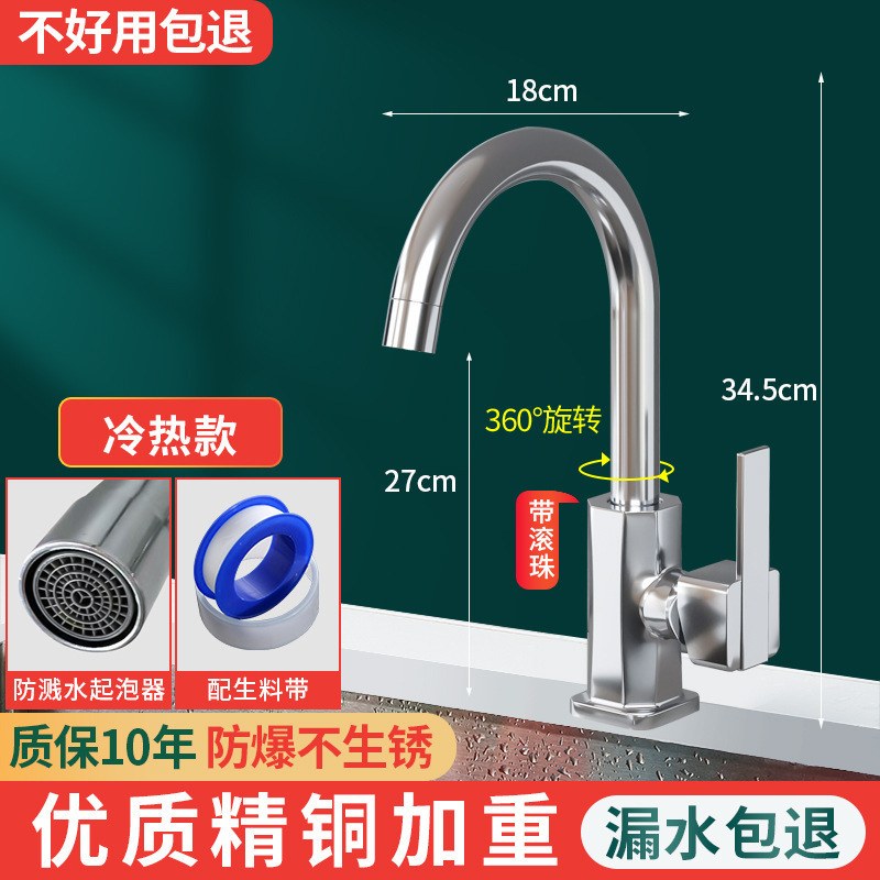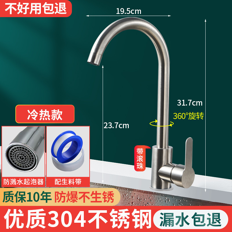 • [뜨거운 것과 차가운 것] 고품질의 두꺼운 304 스테인레스 스틸 대형 곡선 수도꼭지