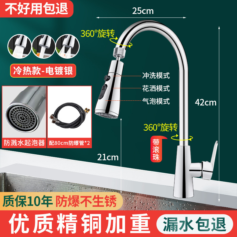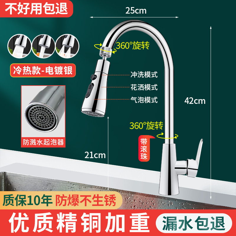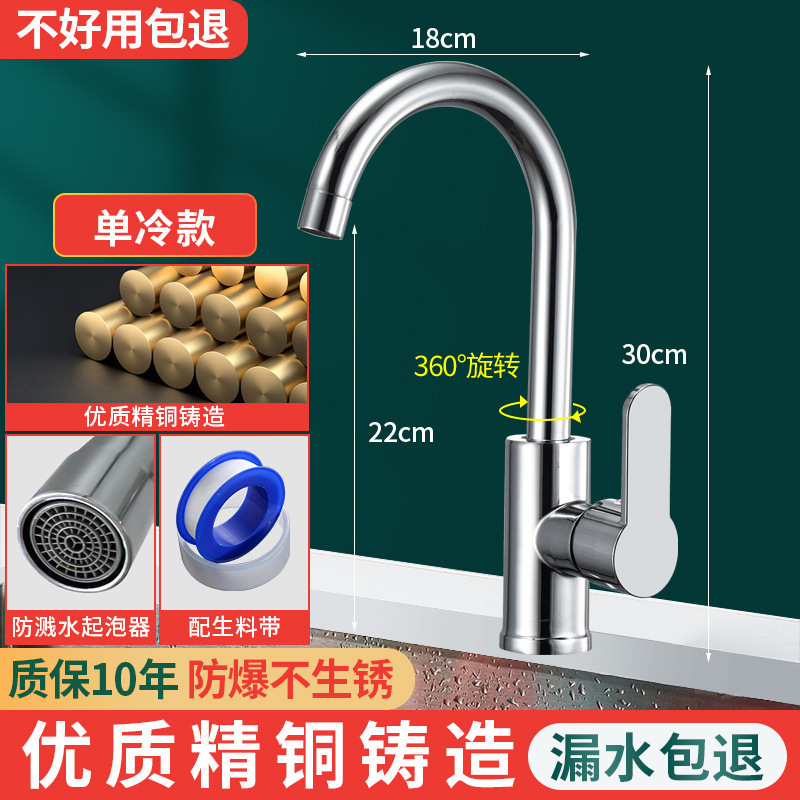 모든 구리 주방 수도꼭지 뜨겁고 차가운 야채 워시 분지 스테인레스 스틸 물 스플래쉬 방지 워시 싱크 단일 콜드 스위블 가구스토어 가기