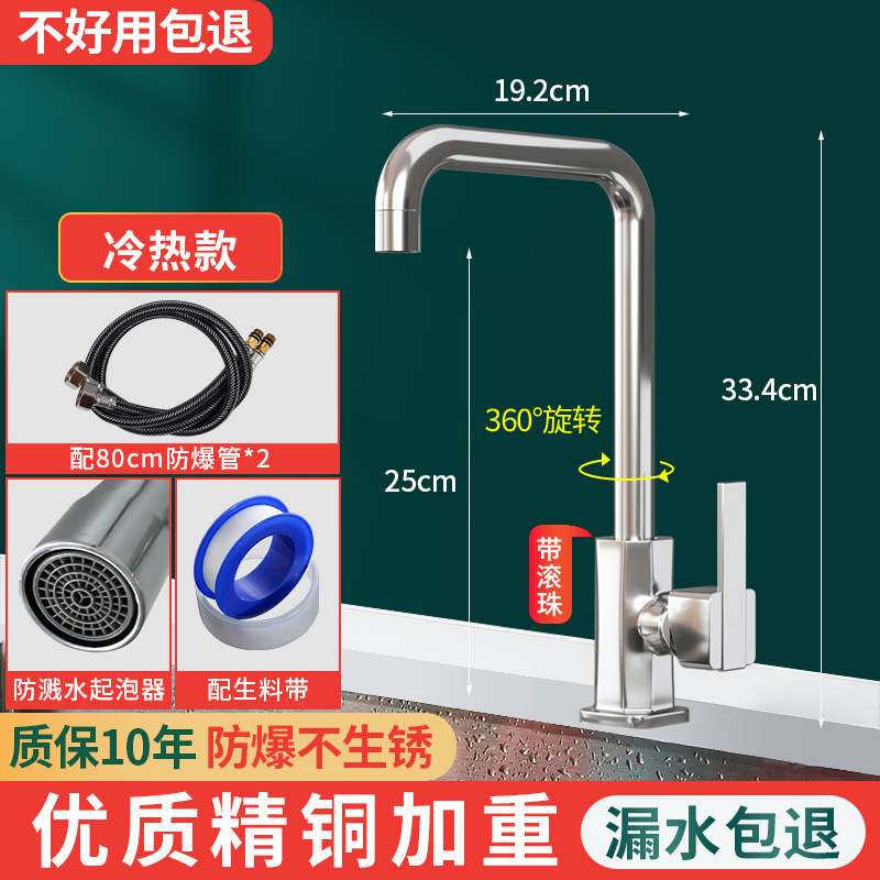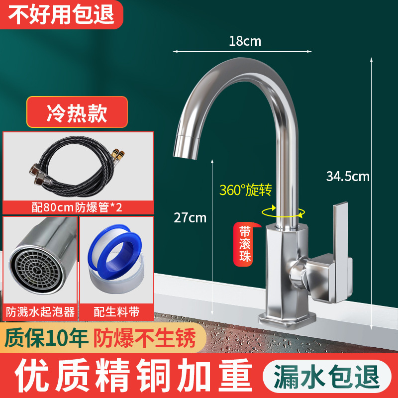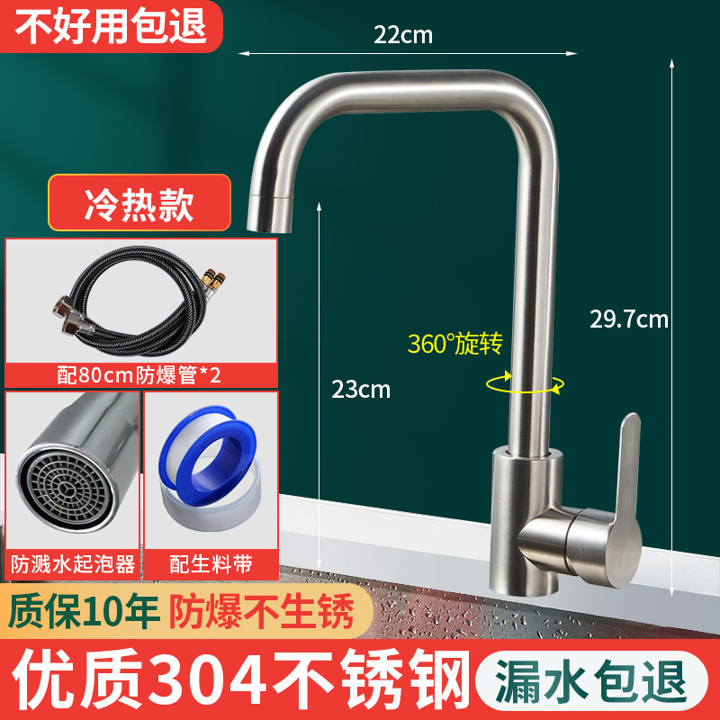 • [뜨거운 것과 차가운 것] 고품질 두꺼운 304 스테인레스 스틸 수도꼭지 + 80CM 방폭 파이프