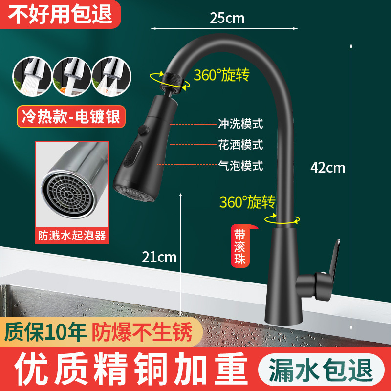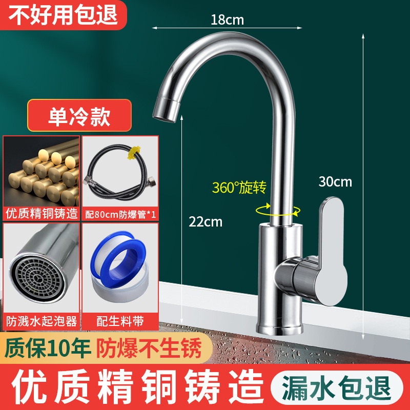 • [단일 냉각 모델] 고품질 미세 구리 두꺼운 대형 곡선 주방 수도꼭지