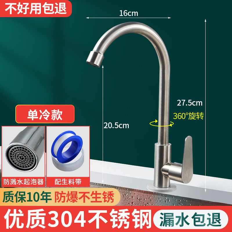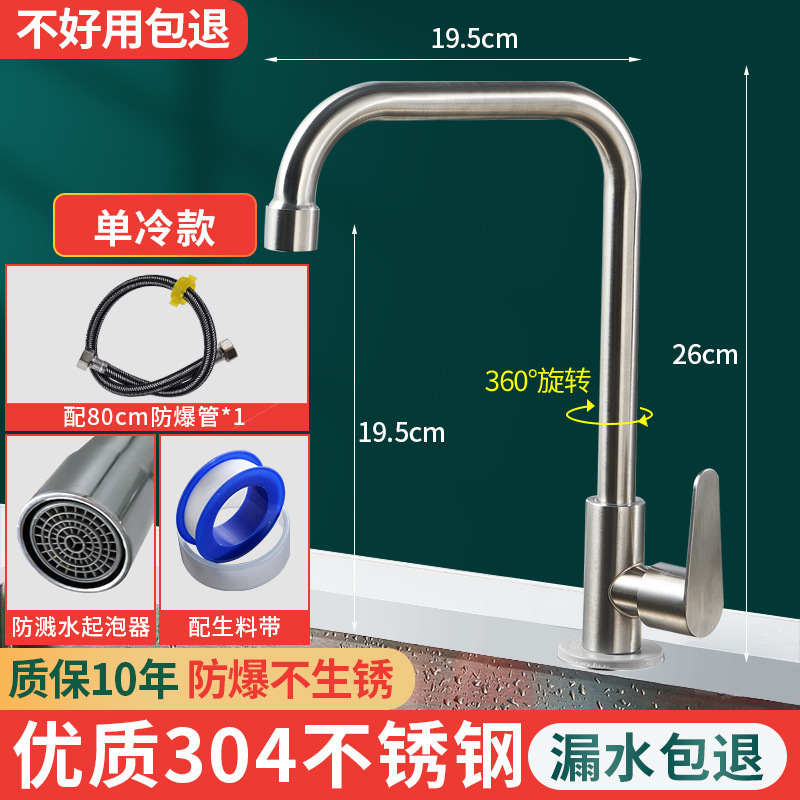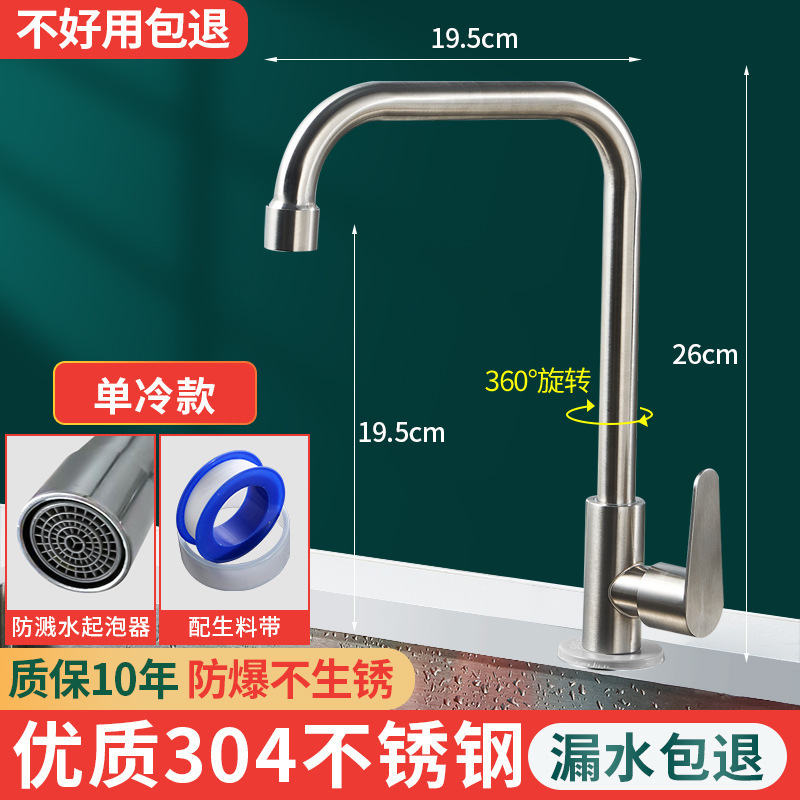 • [단일 냉각] 고품질 두꺼운 304 스테인레스 스틸 7자 수도꼭지