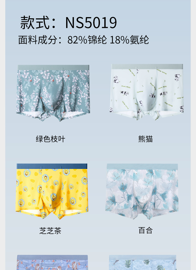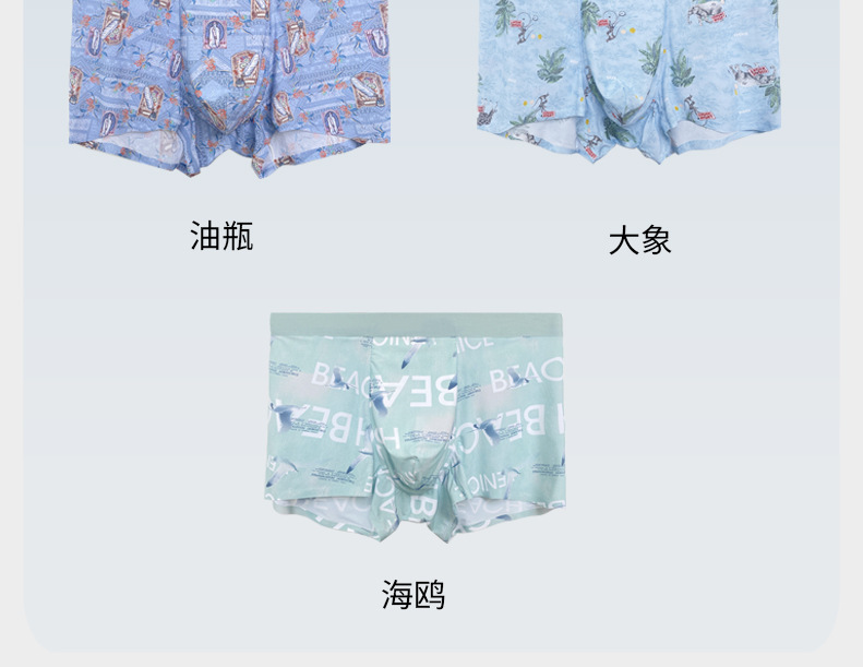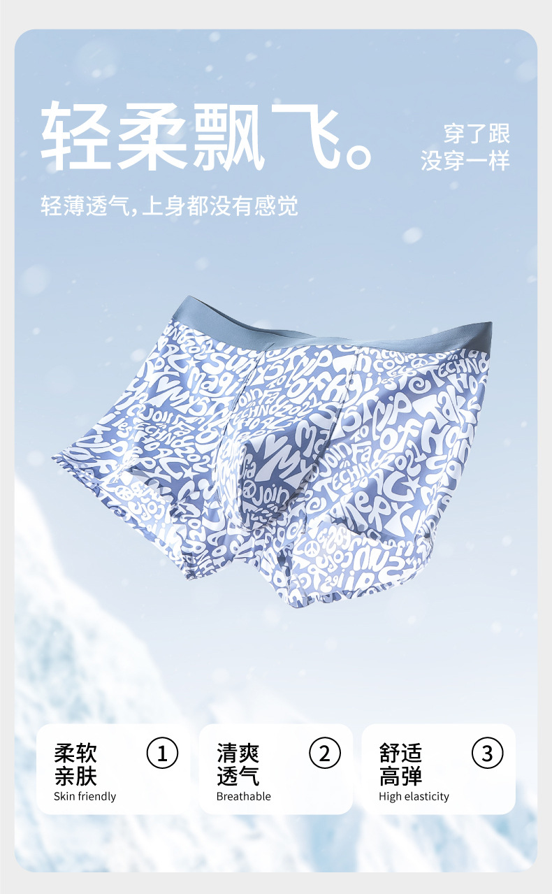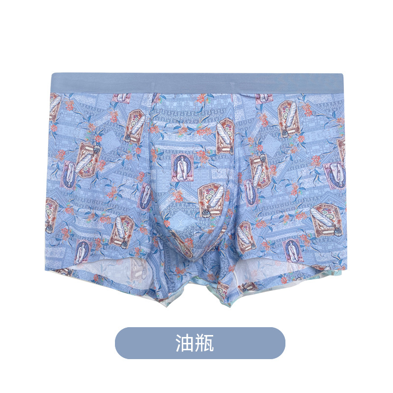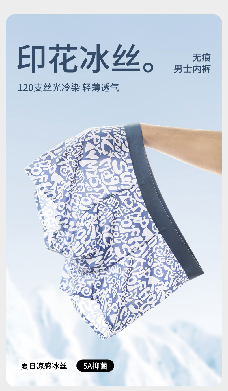 여름 아이스 실크 남성 속옷 패션 인쇄 복서 중간 허리 추적없는 쿨 5A 아이비 박테리아 박서스토어 가기