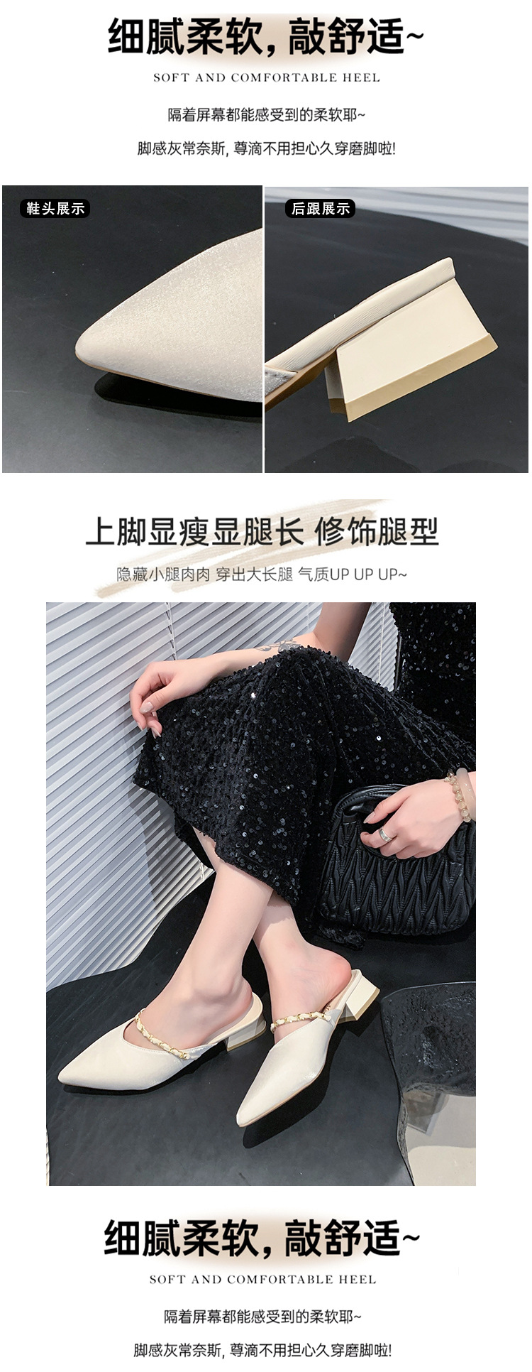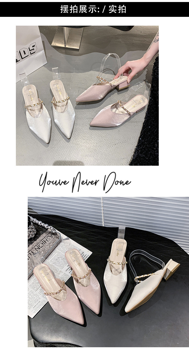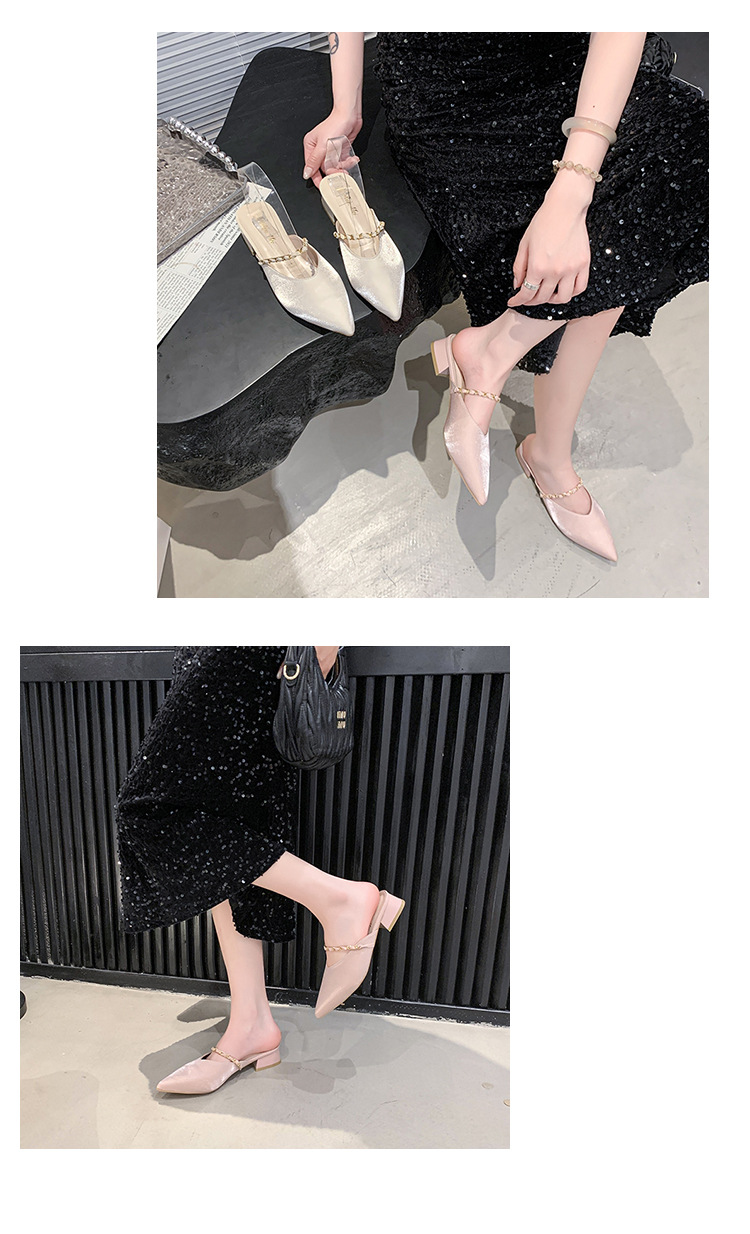 샤넬 스타일 우아한 샌들 여자 2025 한국 스타일 포인팅 메탈 슬라이드 슈즈 여성 신발 올매치 미끄럼 방지 신발스토어 가기