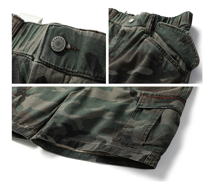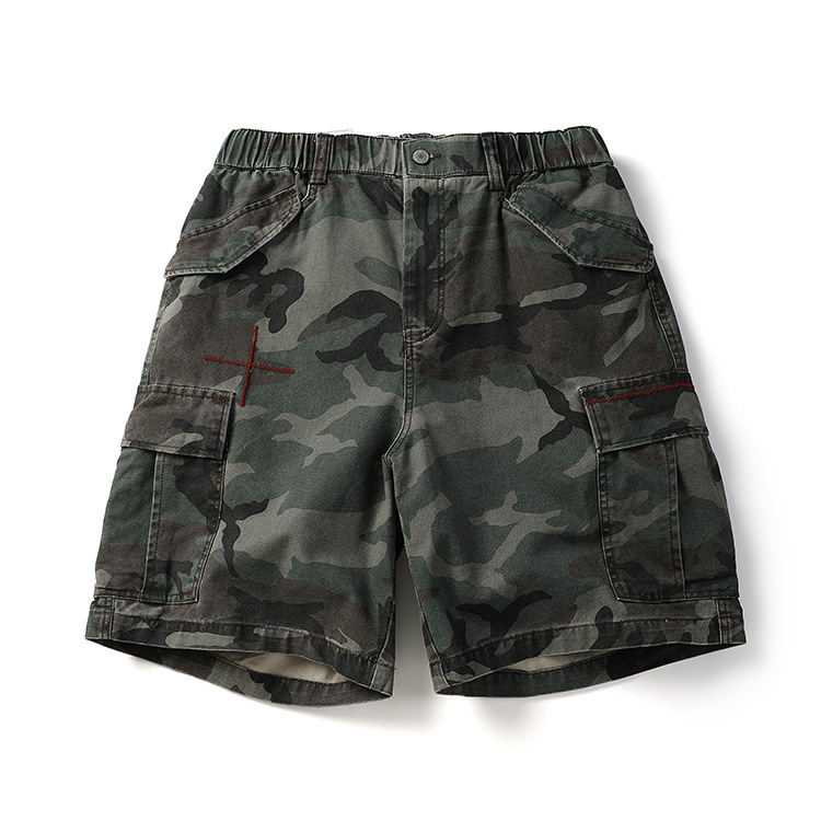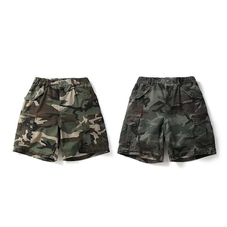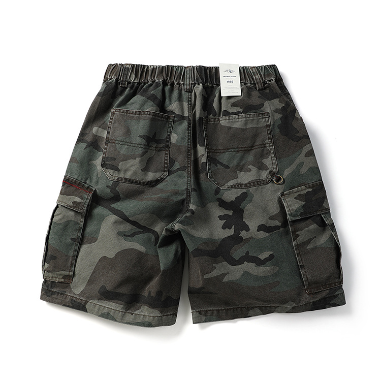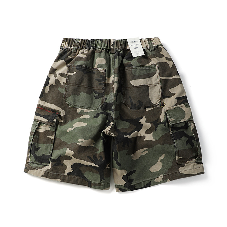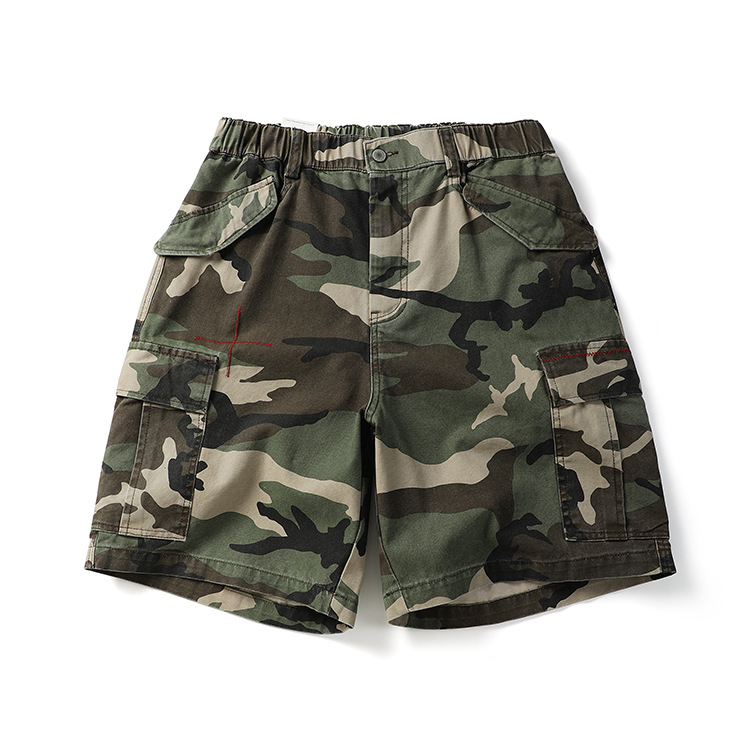 미국 패션 브랜드 헤비급 320g 멀티 백 위장 작업 반바지 남성 여름 야외 면화 느슨한 캐주얼 바지