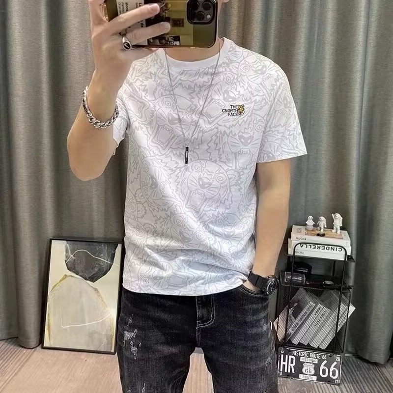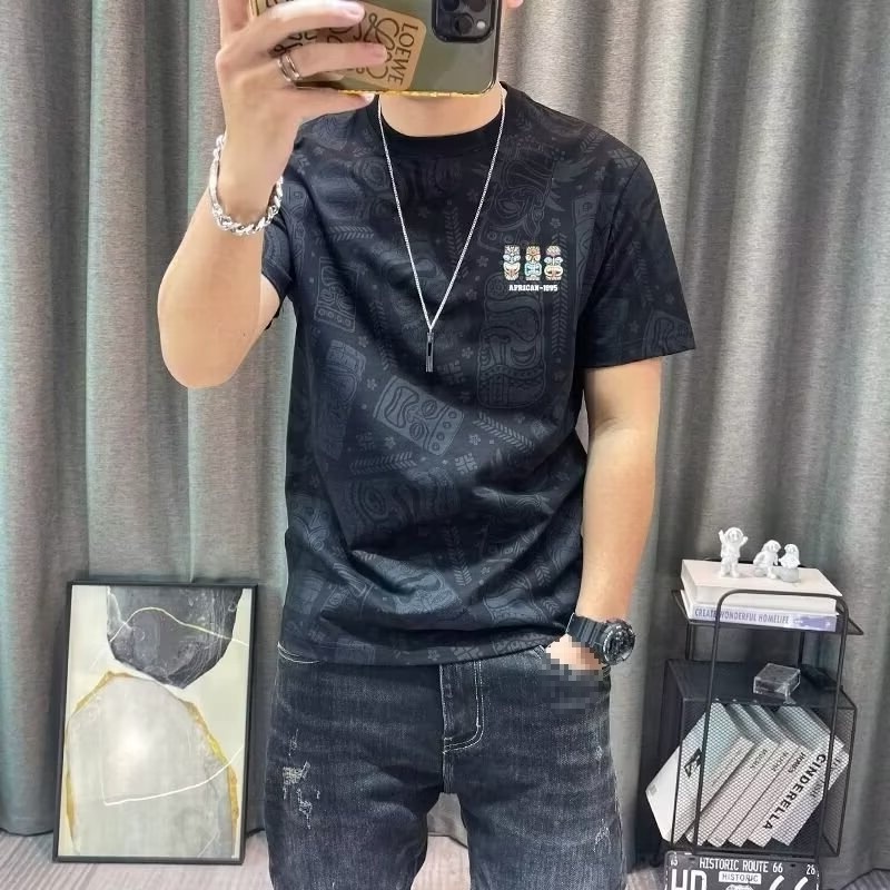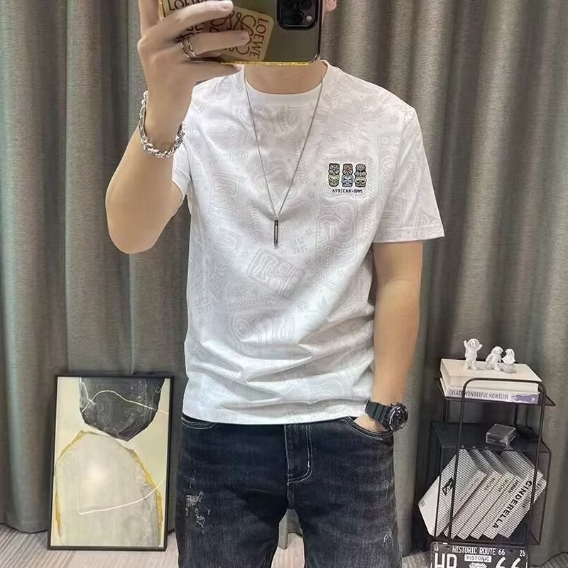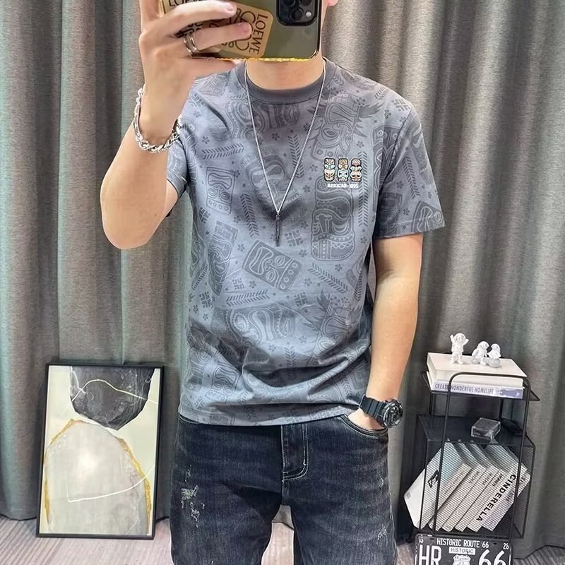 티셔츠 트렌디 브랜드 남성용 반팔 티셔츠 캐주얼 트렌디 남성용 탑 뉴 십대베이스 셔츠 전체 인쇄