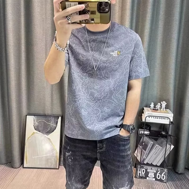 티셔츠 트렌디 브랜드 남성용 반팔 티셔츠 캐주얼 트렌디 남성용 탑 뉴 십대베이스 셔츠 전체 인쇄스토어 가기