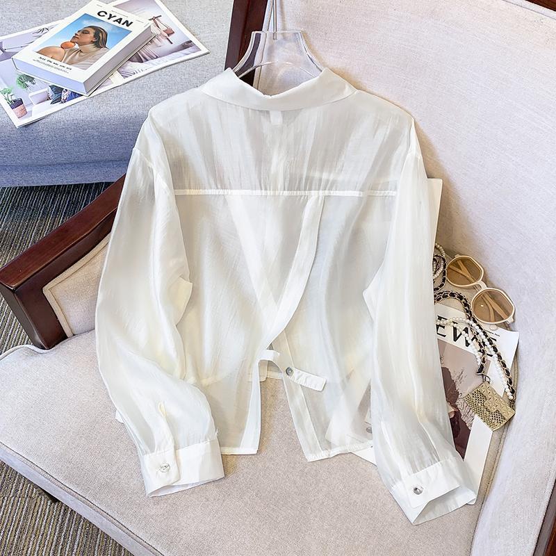 2024 새로운 도착 태양 보호 의류 셔츠 외부 착용 여성의 여름 얇은 아이스 실크 카디건 유행 셔츠 외부-카디건 탑 착용스토어 가기