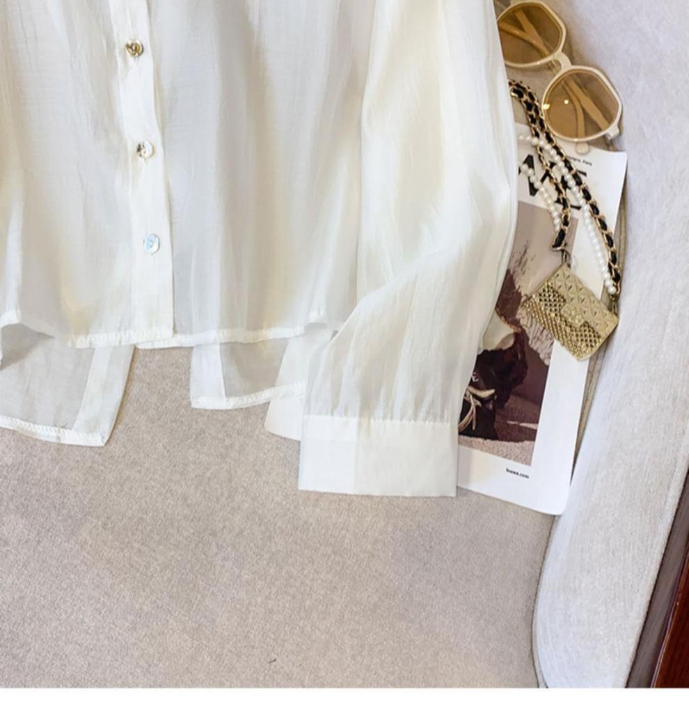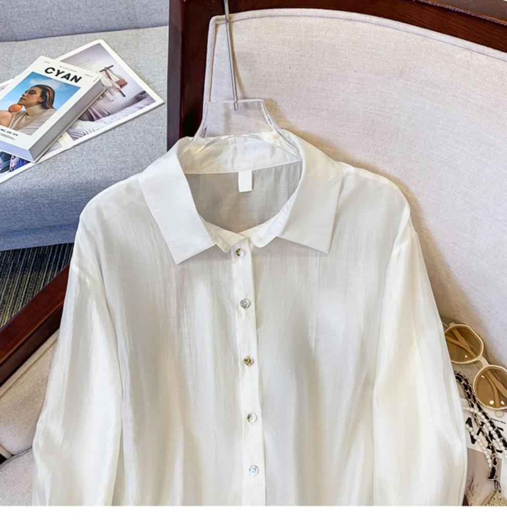 2024 새로운 도착 태양 보호 의류 셔츠 외부 착용 여성의 여름 얇은 아이스 실크 카디건 유행 셔츠 외부-카디건 탑 착용
