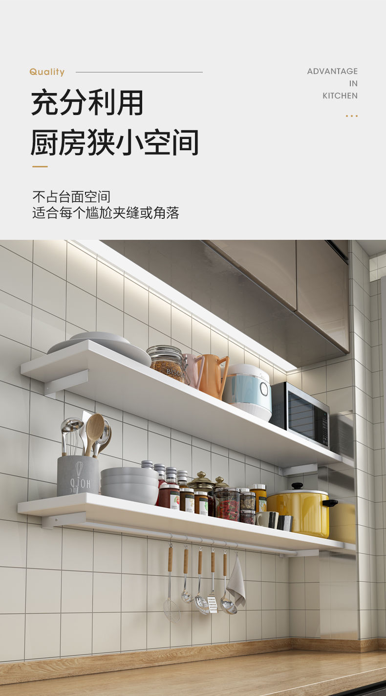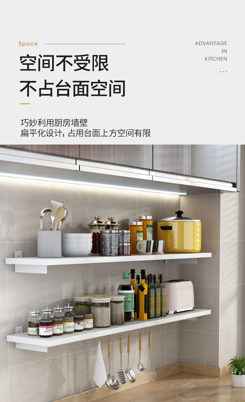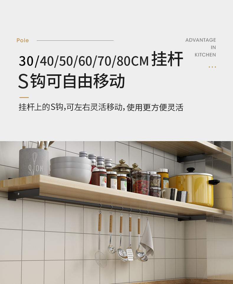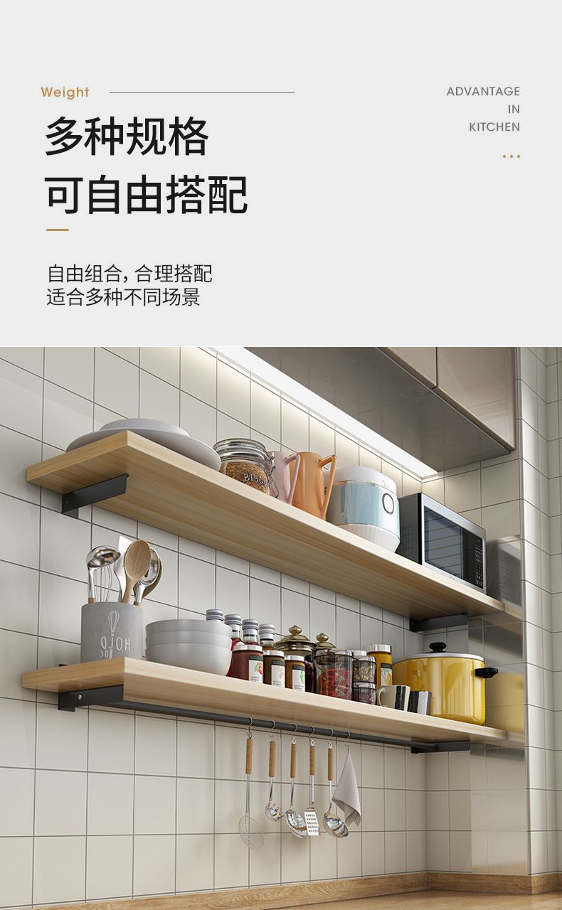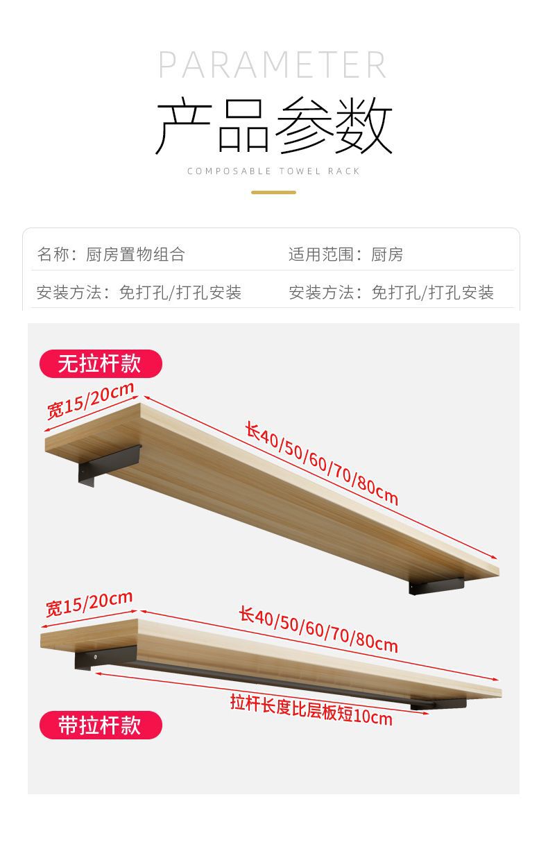 펀치없는 주방 저장 랙 파티션 벽 교수형 막대 벽 조미료 단단한 목재 저장 랙 다기능 저장 랙