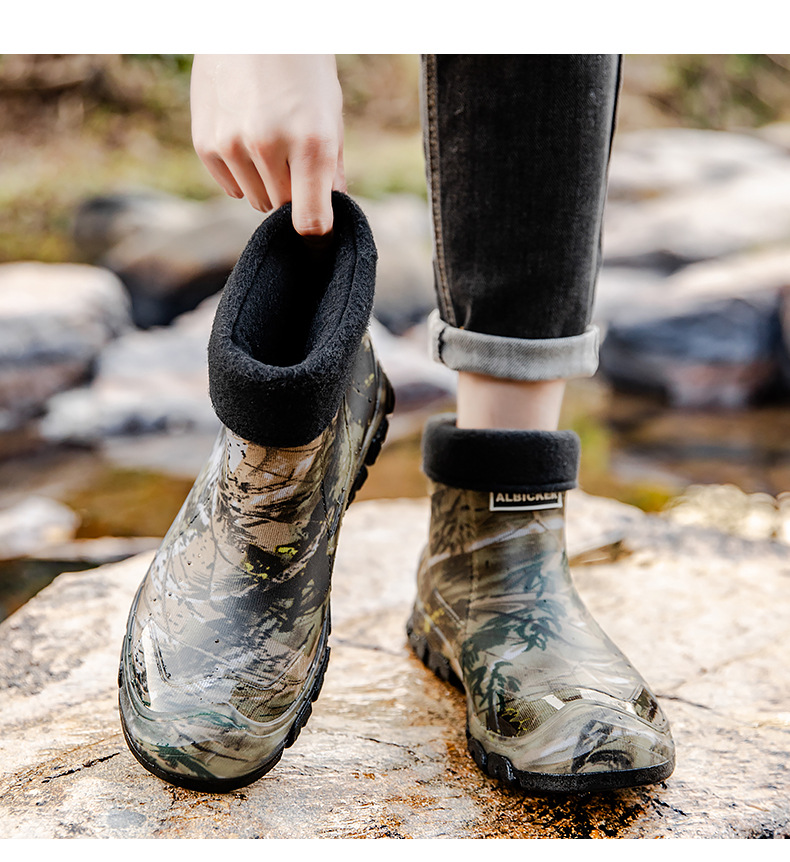 국경 간 짧은 튜브 남성 장화 봄과 가을 야외 위장 산 남자 장화 39-48 초대형 낚시 신발 고무 신발스토어 가기