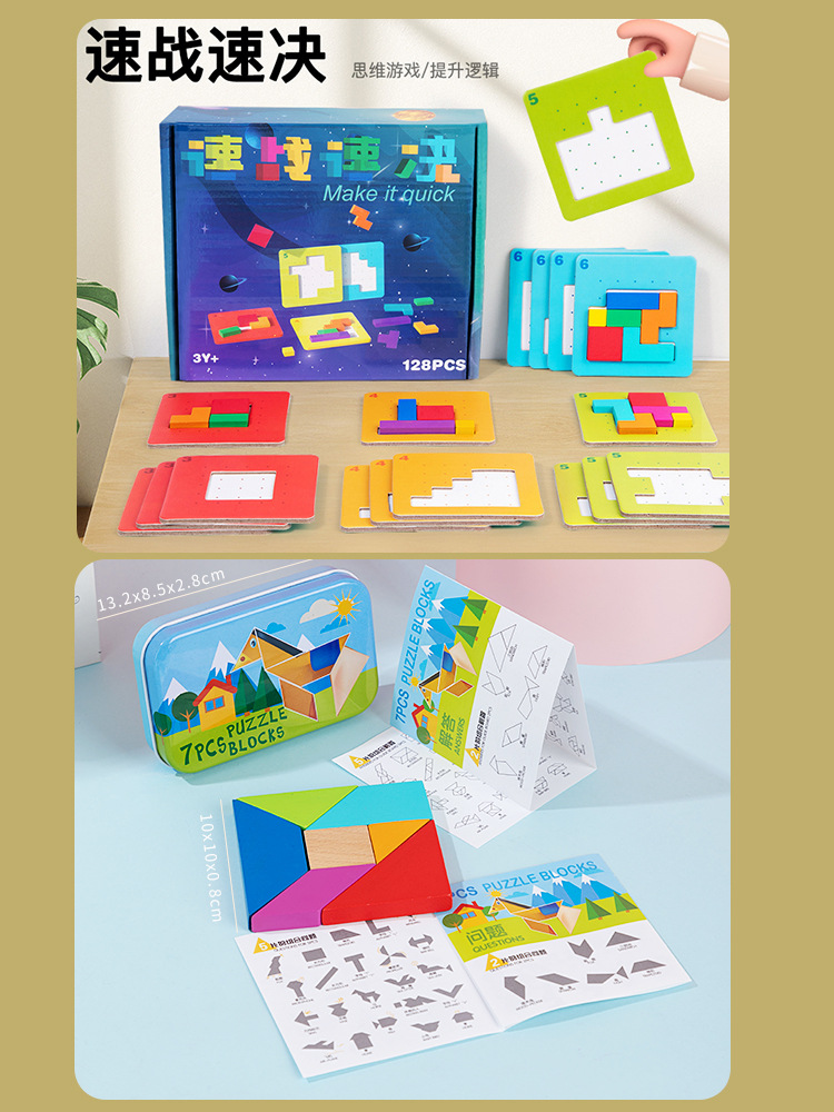 • 2세트) 퀵솔루션 퍼즐 + 철 상자에 담긴 너도밤나무 탱그램(대만 버전)