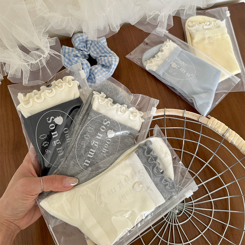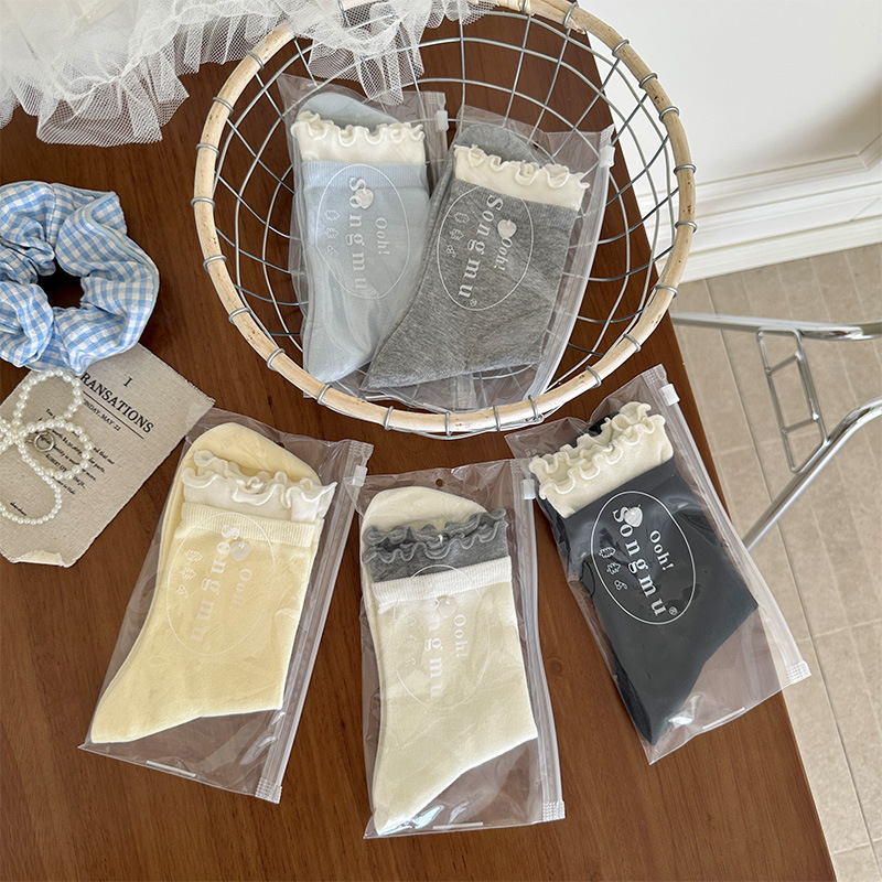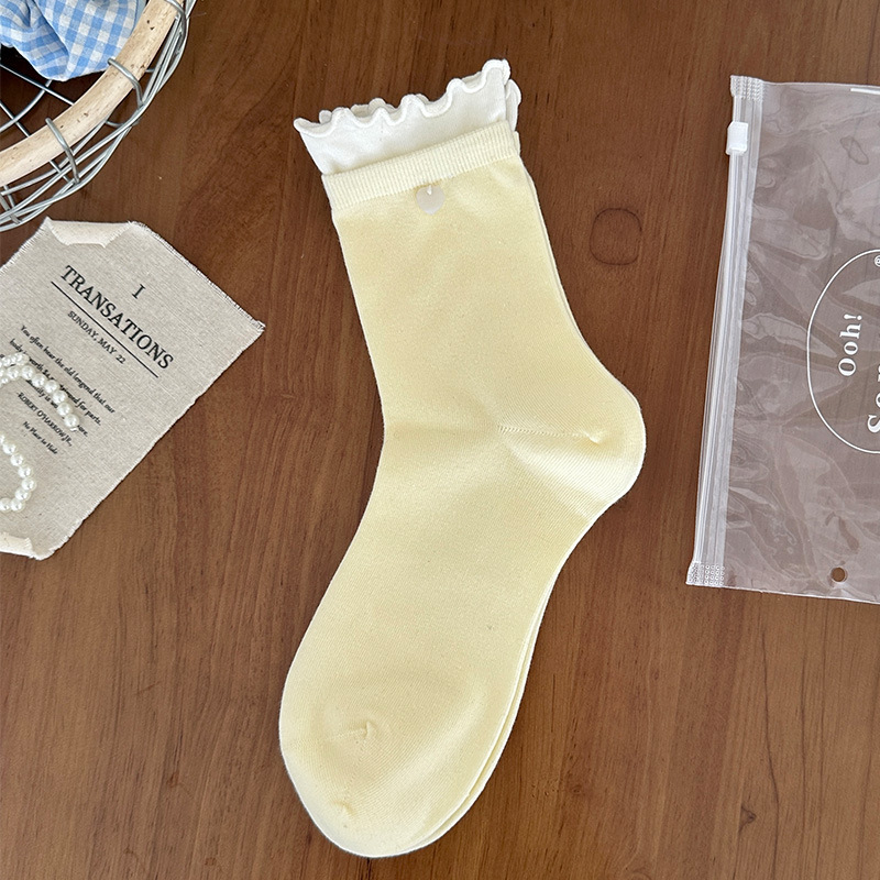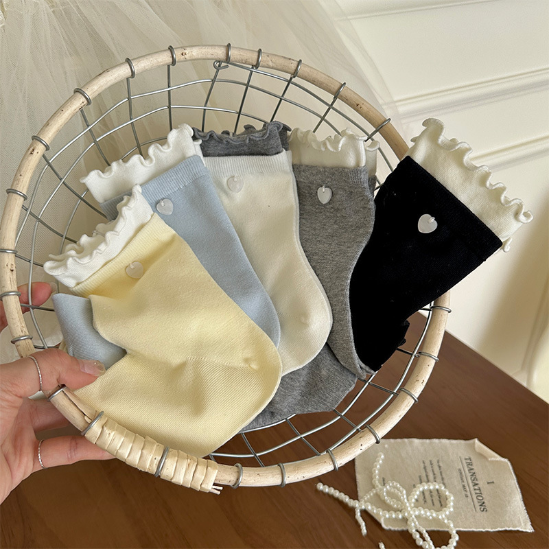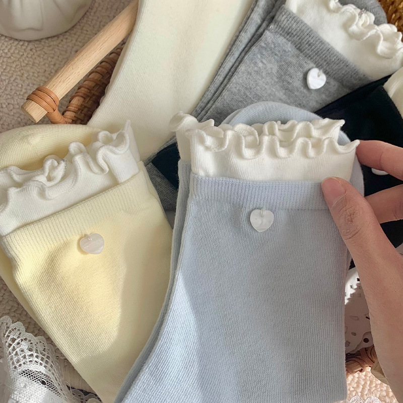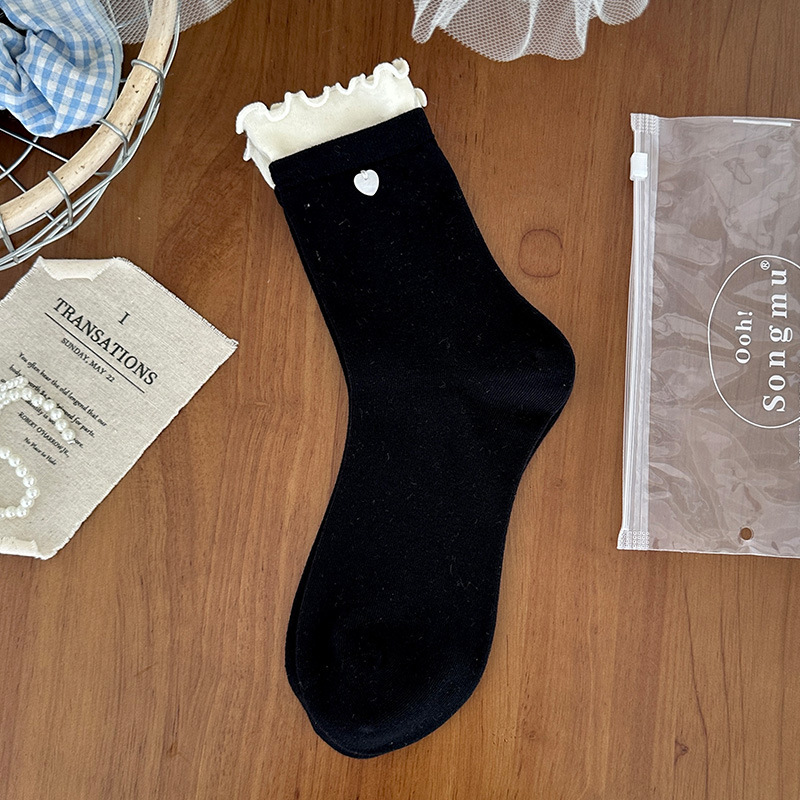 디자인 라커우 바느질 귀 가장자리 대비 컬러 양말 여성 한국 패션 스위트 스타일 JK 미드 튜브 양말 작은 가죽 신발
