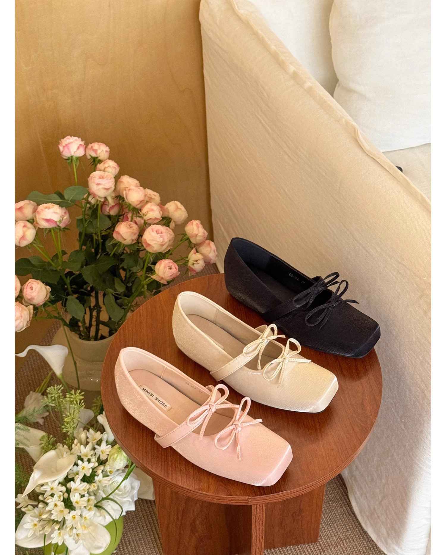 페어리 스타일 활 스퀘어 헤드 메리 제인 신발 여성의 2025 새로운 얕은 입 내부 편평한 기질 신발스토어 가기