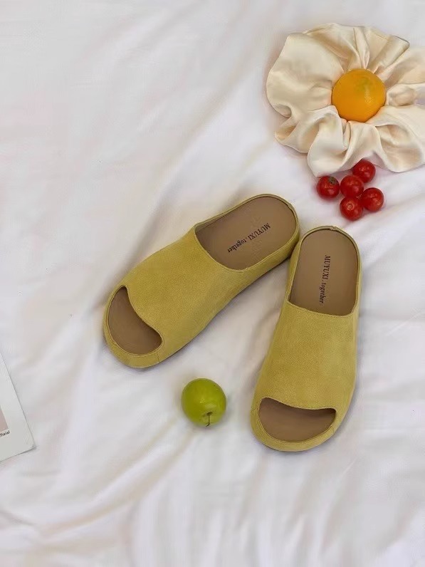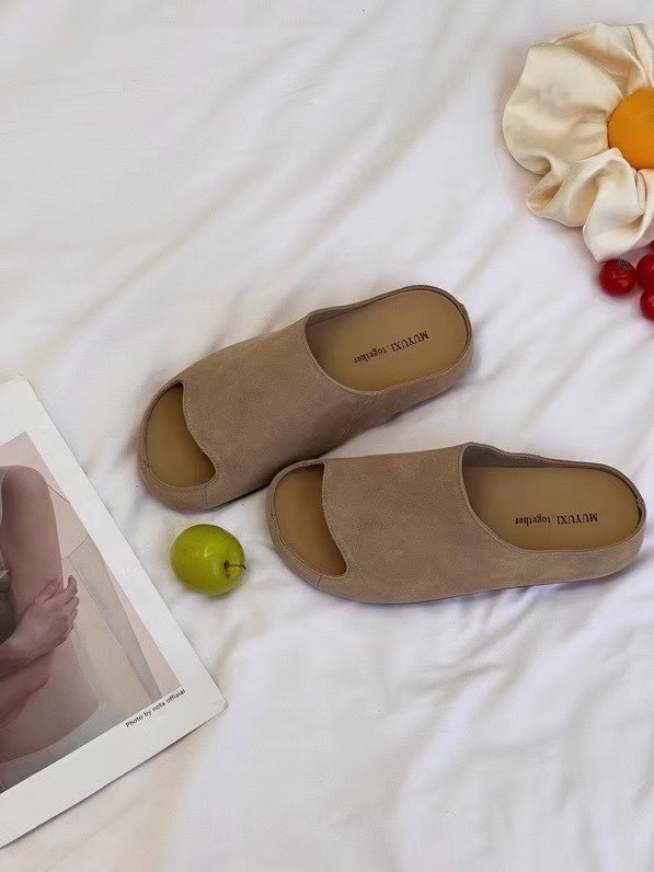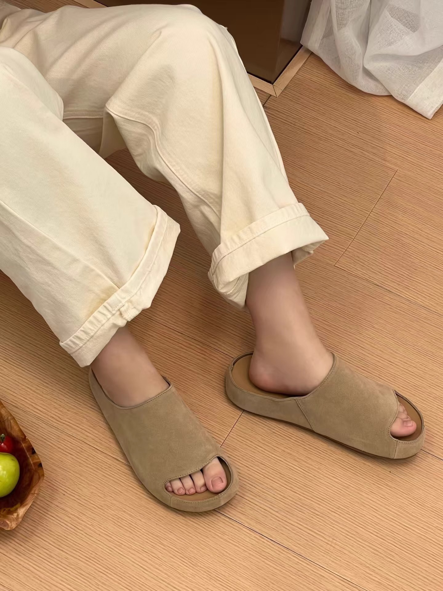 여성을위한 부드러운 가죽 오픈 발가락 Birkenstock 슬리퍼 2025 여름 겉옷 두꺼운 밑창 발가락 반 슬리퍼 슬립 온 게으른 샌들