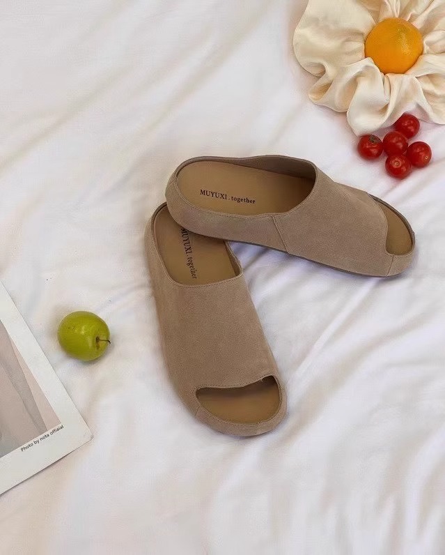여성을위한 부드러운 가죽 오픈 발가락 Birkenstock 슬리퍼 2025 여름 겉옷 두꺼운 밑창 발가락 반 슬리퍼 슬립 온 게으른 샌들스토어 가기