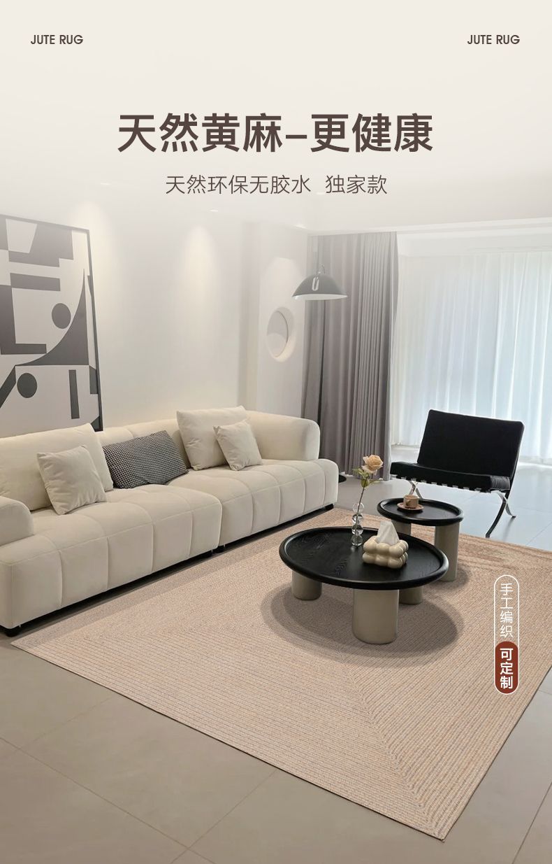 카펫 침실 담요 양면 거실 소파 접착제 황마 일본 짠 제로 2025 2 색 새로운 자연