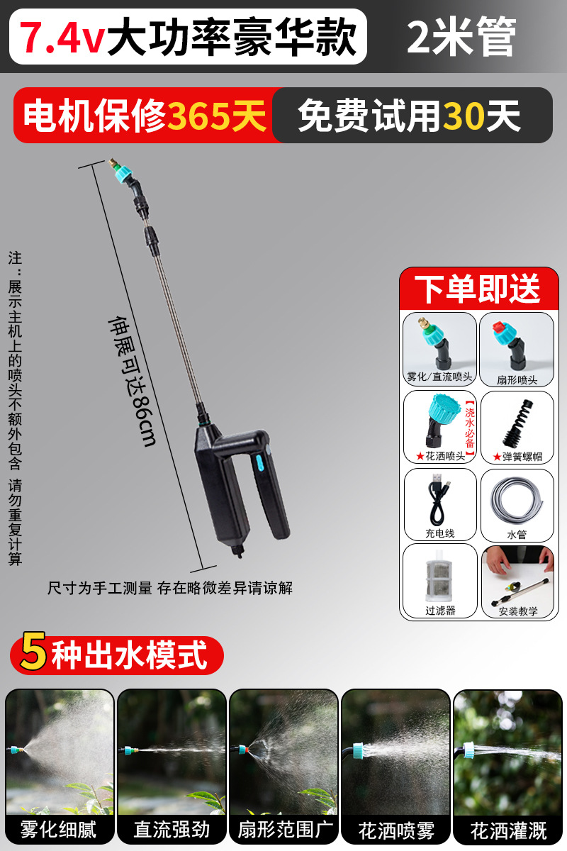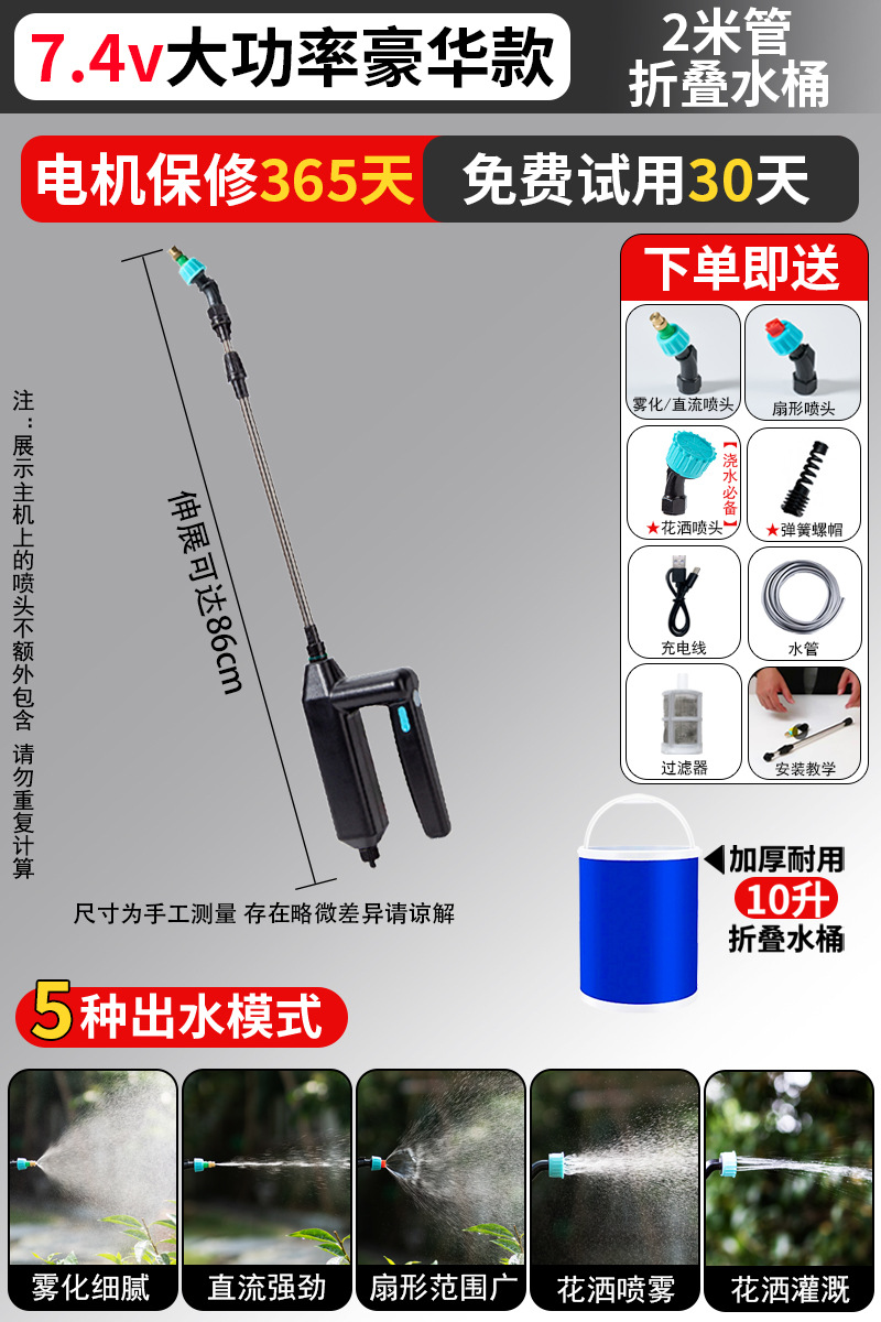 • 럭셔리 모델 5m 튜브 + 3 노즐 + 접이식 버킷 [7.4v 고출력]