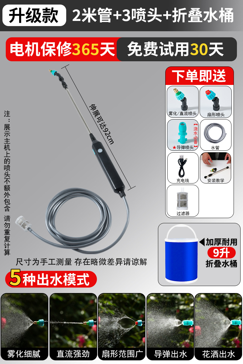 • 럭셔리 모델 2m 튜브 + 3 노즐 + 접이식 버킷 [7.4v 고출력]