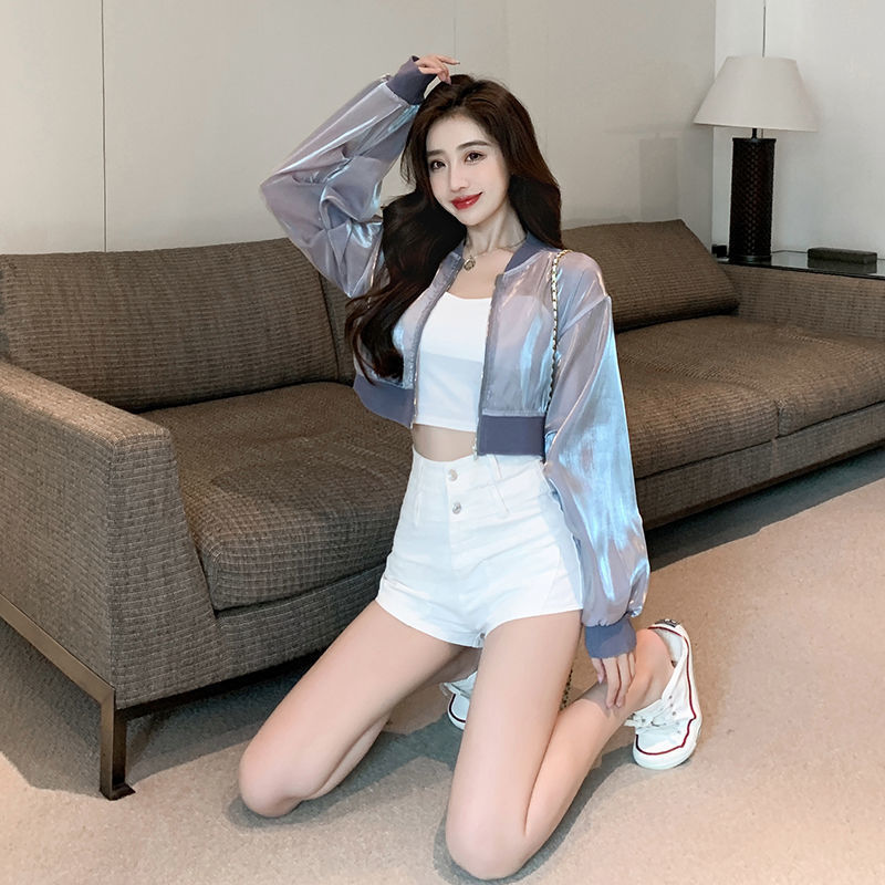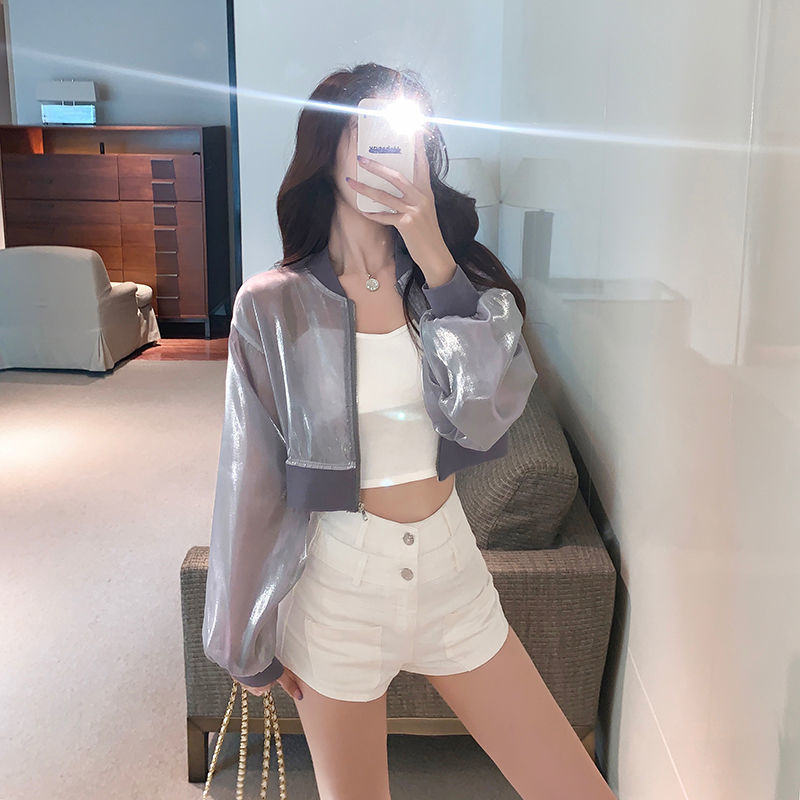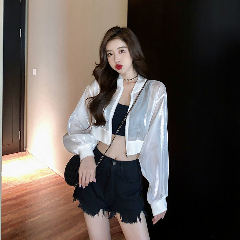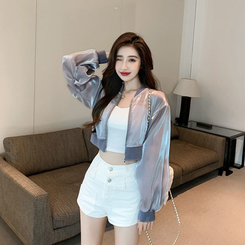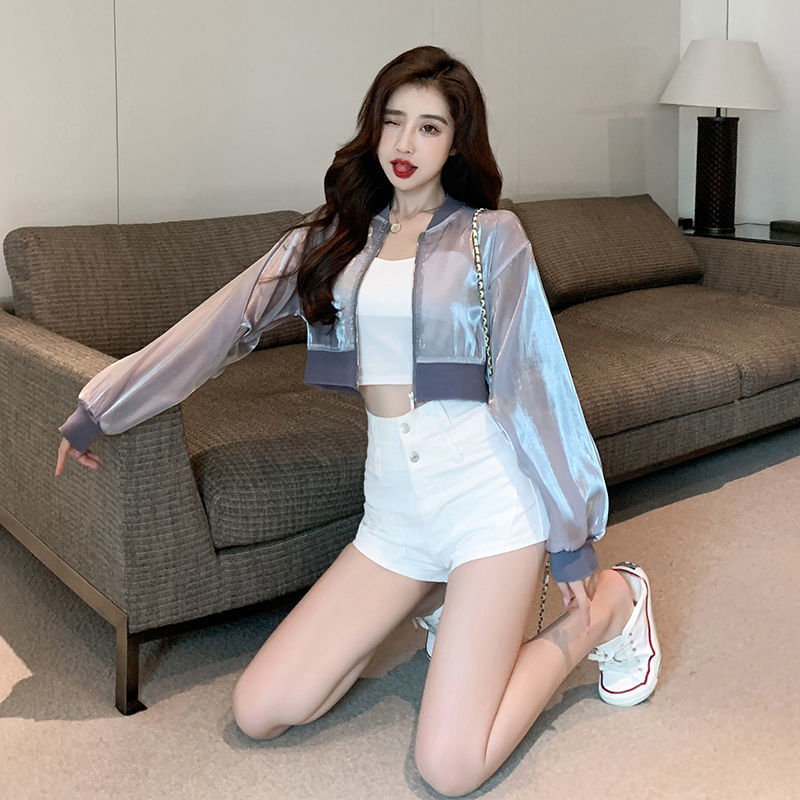 2024 년 여름 새로운 한국 스타일 얇은 투명 스트리밍 카디건 짧은 태양 보호 의류 여성용 에어컨 셔츠 코트 재킷