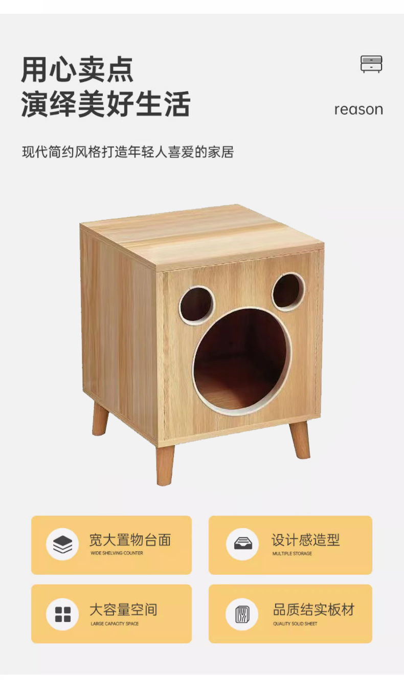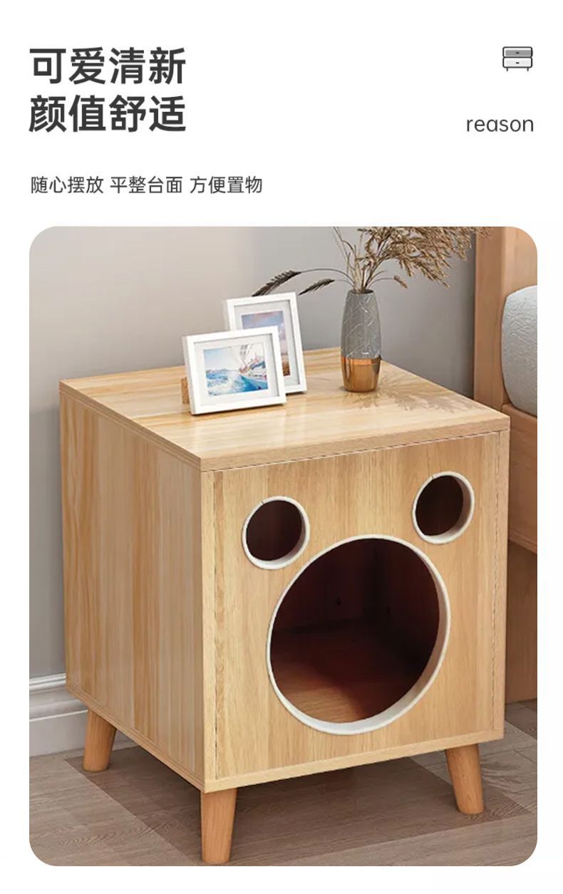 인간의 고양이 다기능 로그 컬러 고양이 둥지 캐비닛 간단한 통합 침대 옆 캐비닛 작은 침대 옆 테이블 작은 고양이 집 사육장스토어 가기