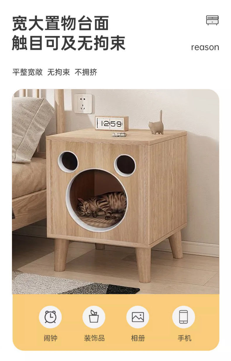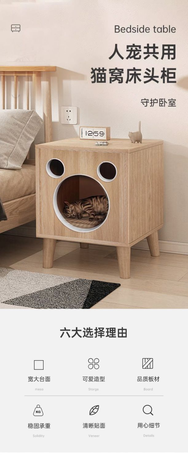 인간의 고양이 다기능 로그 컬러 고양이 둥지 캐비닛 간단한 통합 침대 옆 캐비닛 작은 침대 옆 테이블 작은 고양이 집 사육장