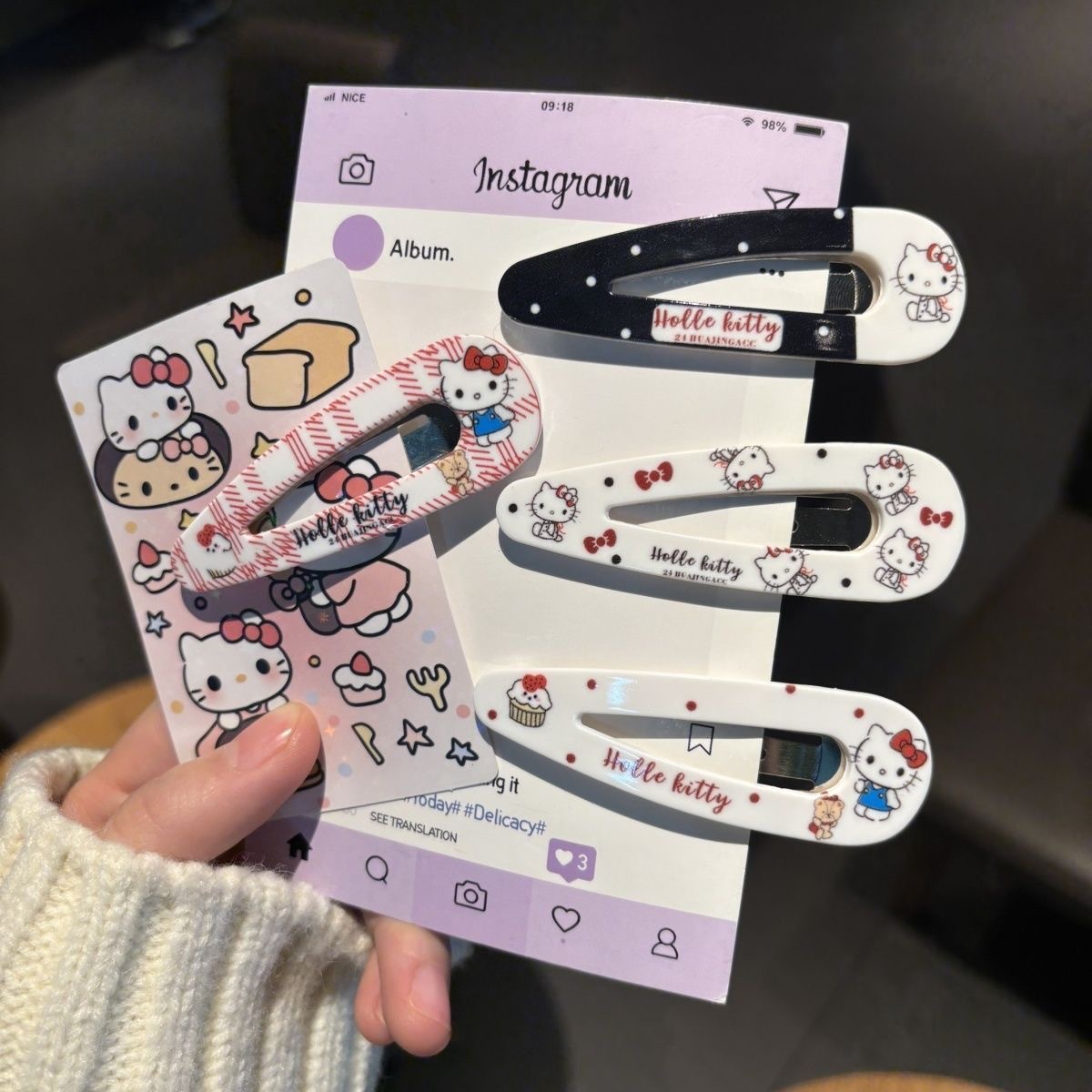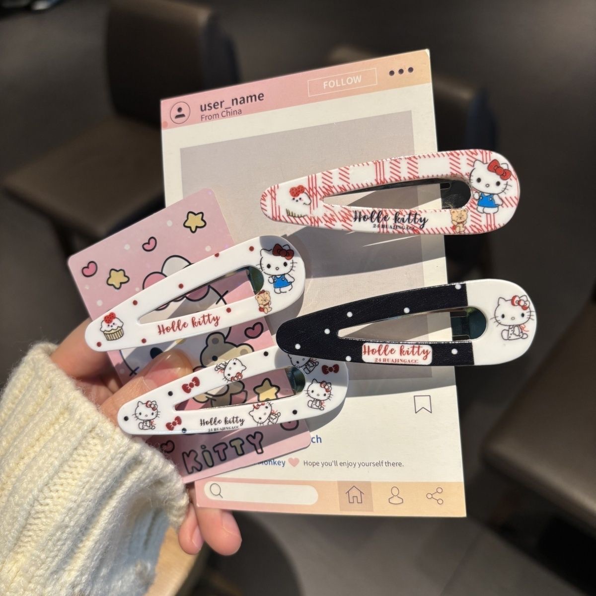 여성스러운 헬로키티 물방울 BB 클립 재미있는 헤어핀 앞머리 옆머리 클립 다용도 심플 헤어 액세서리