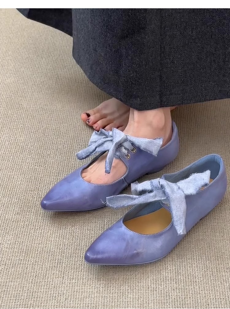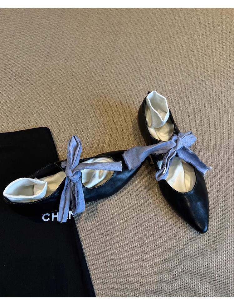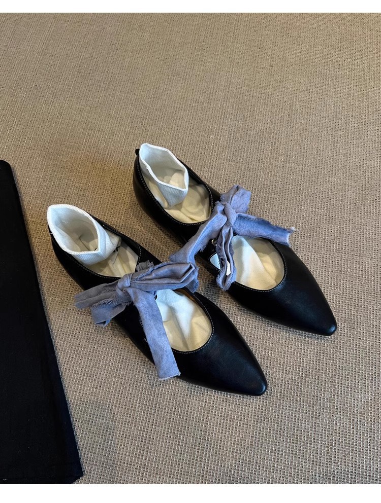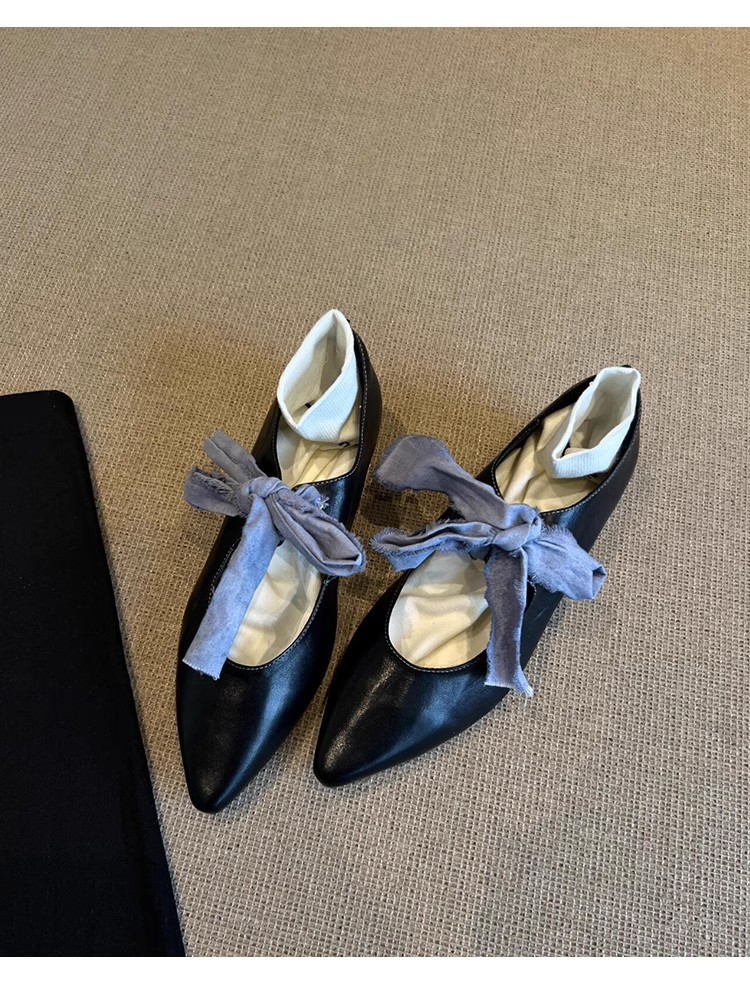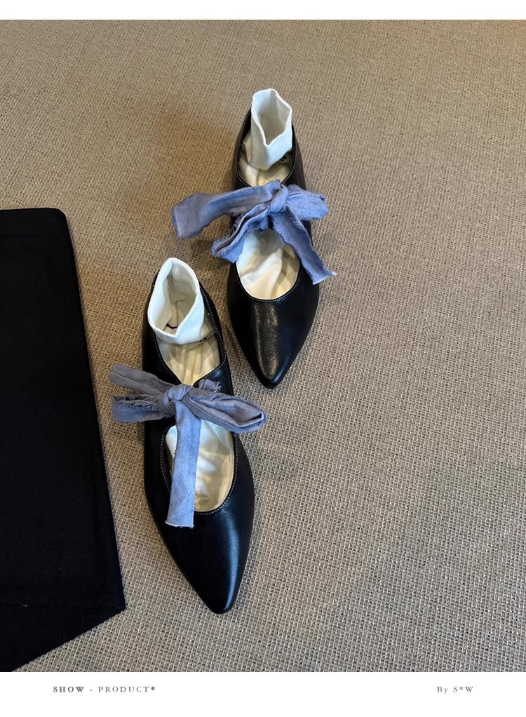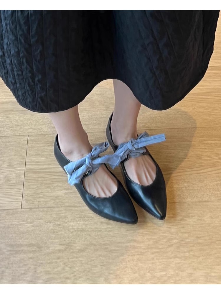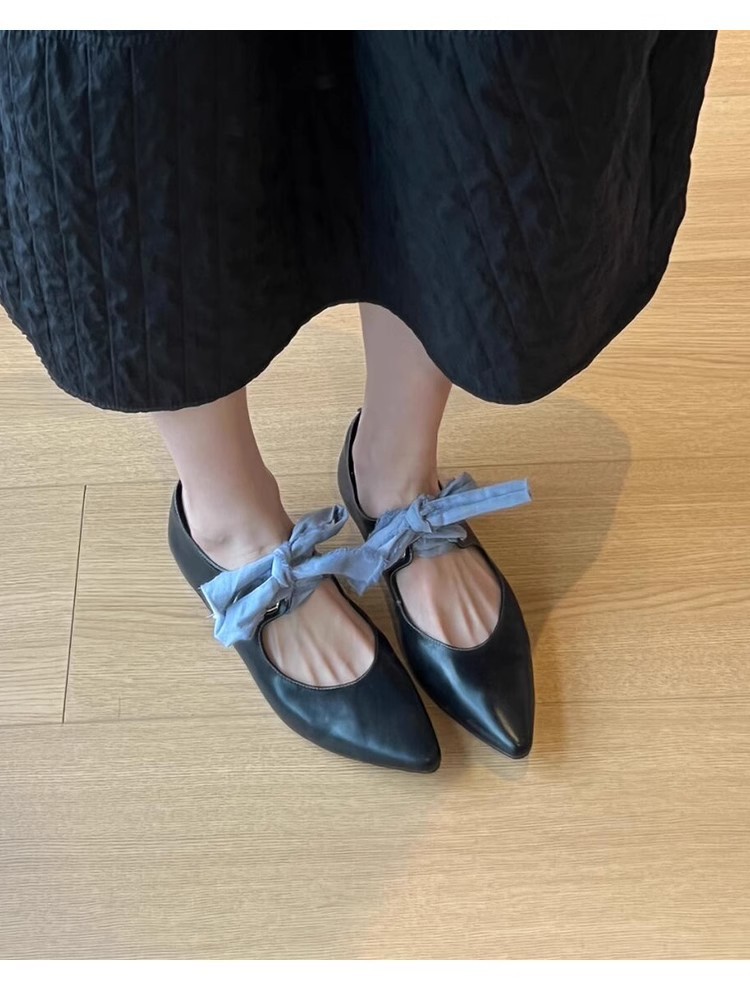 상품 만들기 ~ 프랑스 기질 메리 제인 신발 복고풍 예술 뾰족한 레이스 활 평평한 바닥 얕은 입 신발 여성
