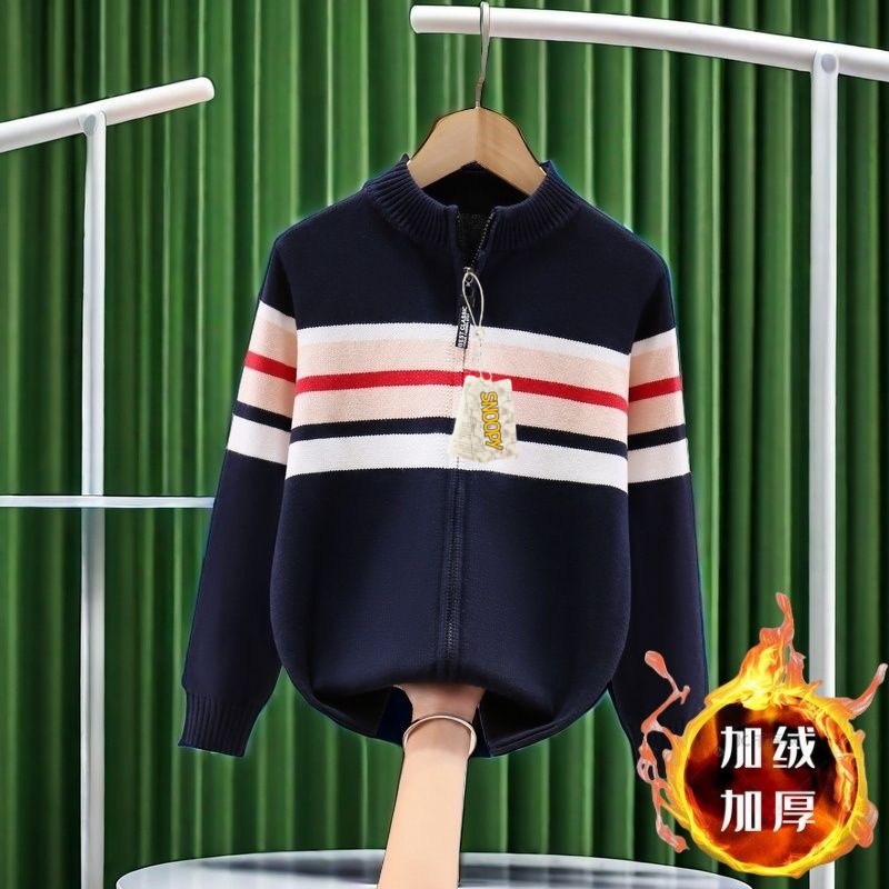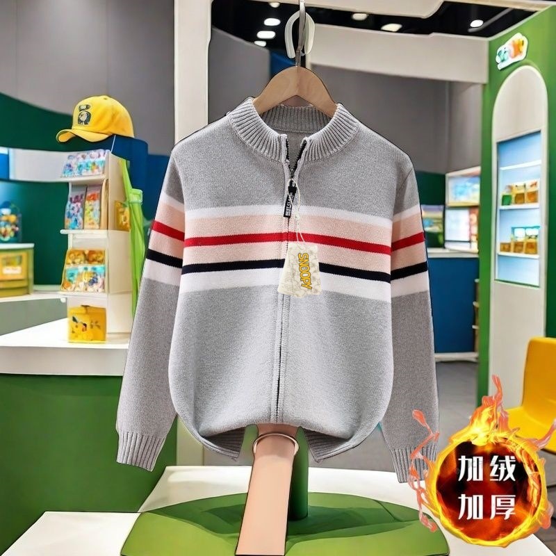 스누피 소년의 스웨터 가을과 겨울 순면 코트 중 큰 아이 따뜻한 기모 어린이 스웨터 니트 카디건