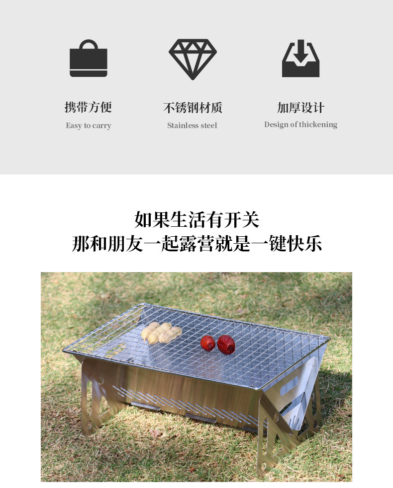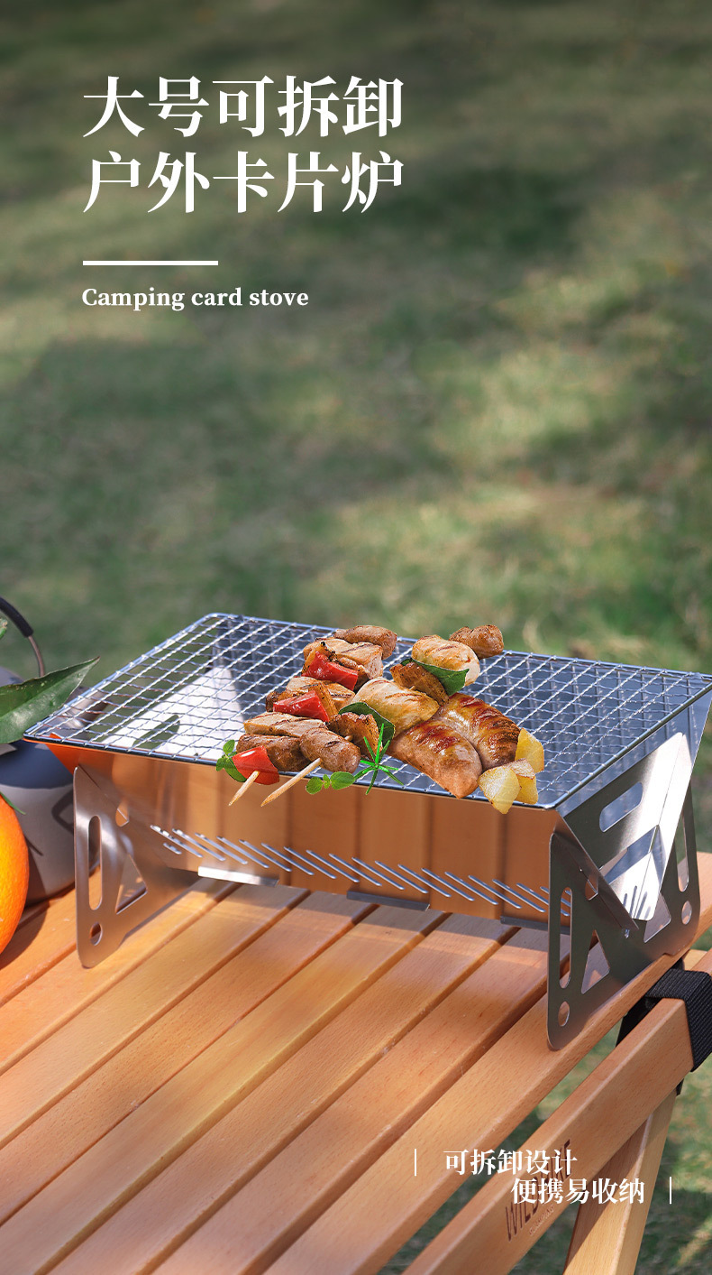 야외 접이식 대형 바베큐 그릴 스테인레스 스틸 카드 스토브 캠핑 용품 휴대용 숯 스토브 그릴