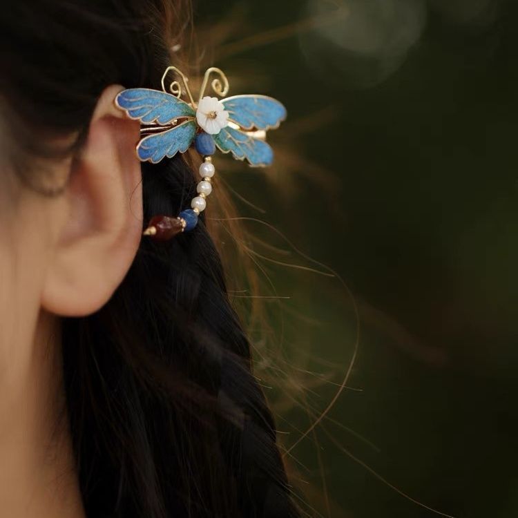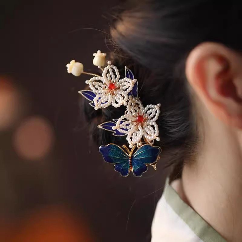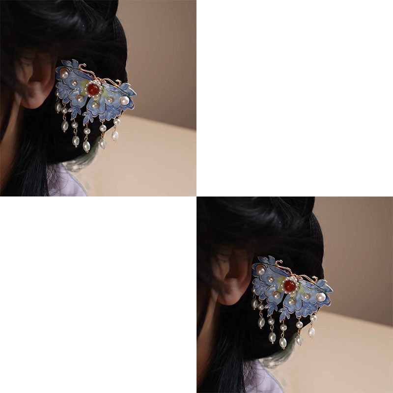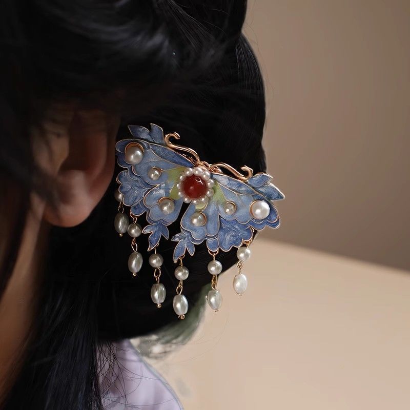 • 클래식 블루 나비 진주 머리핀 AZJ190