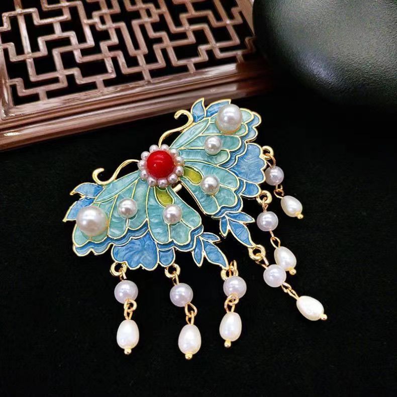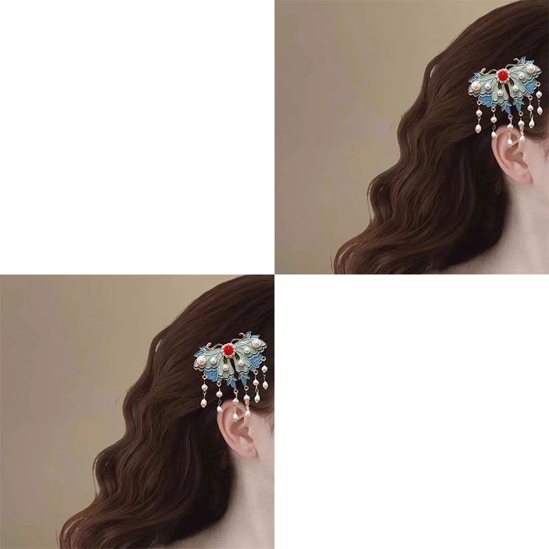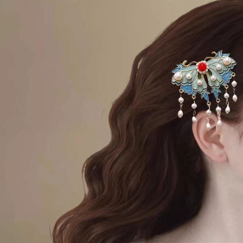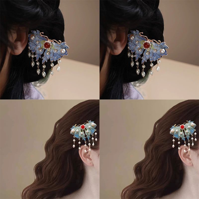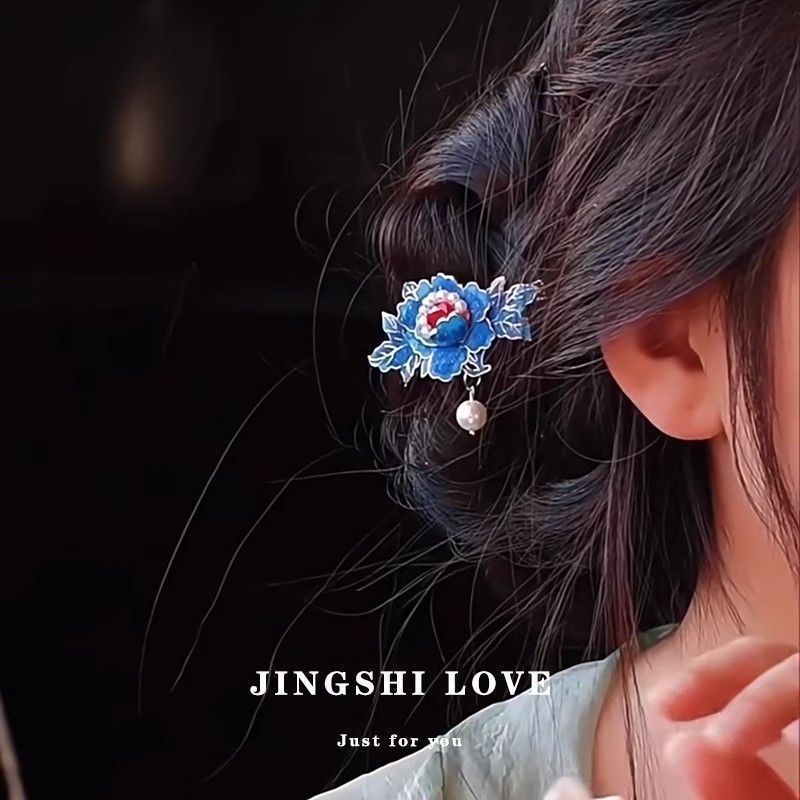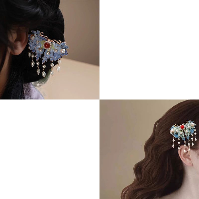 궈펑 클립 헤드웨어 여성용 2023 새 뒷머리 에나멜 모래 모란 사이드 클립 사이드 청삼 액세서리스토어 가기