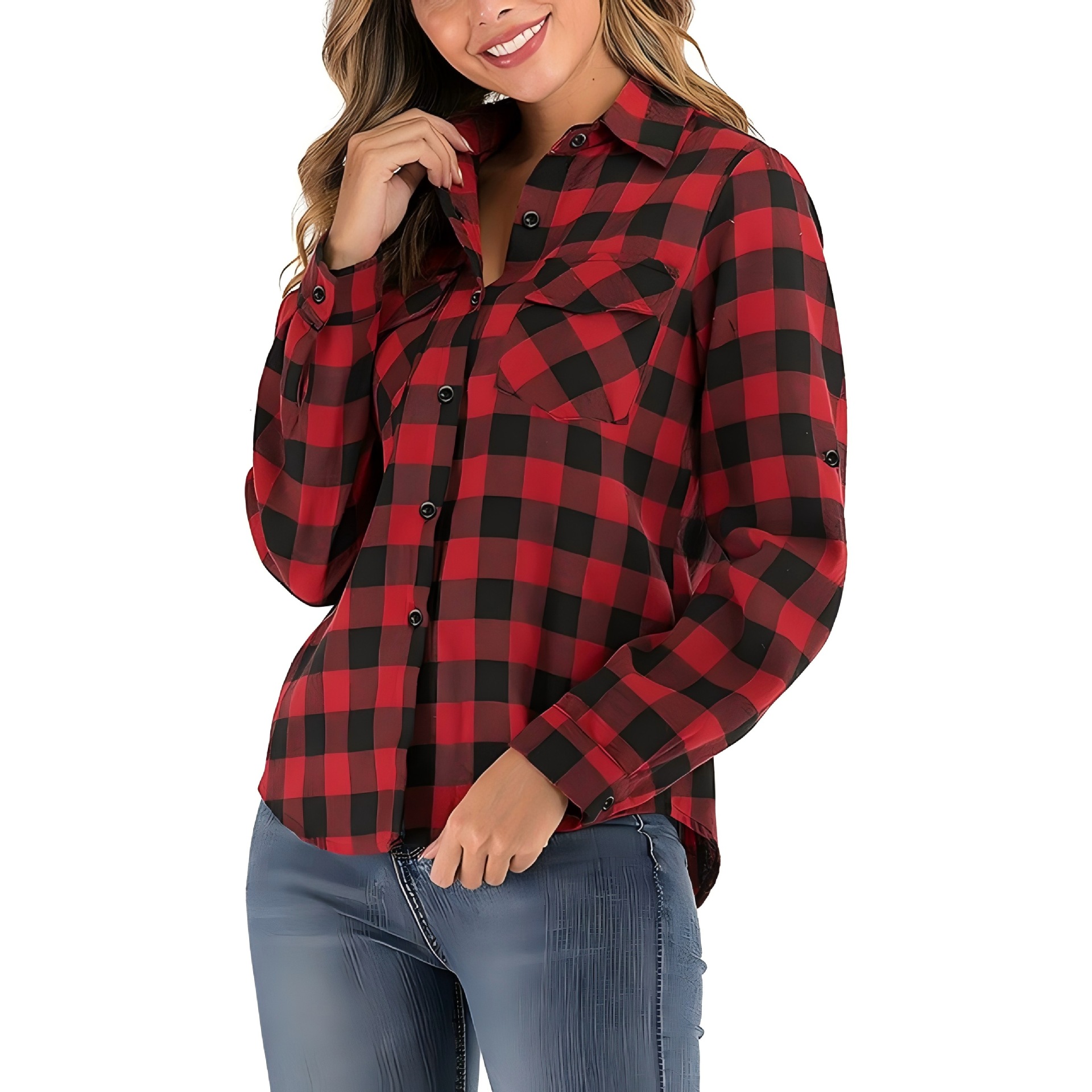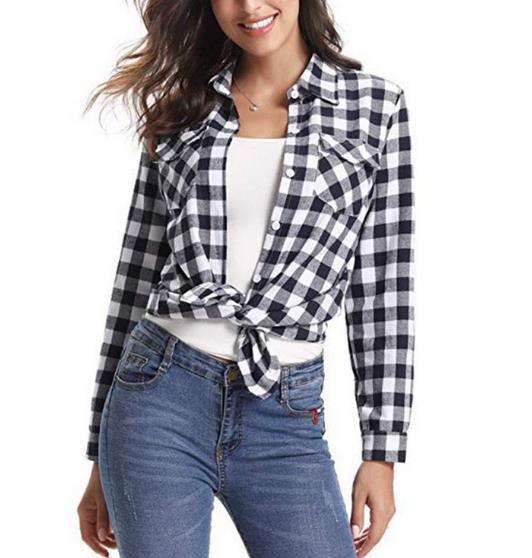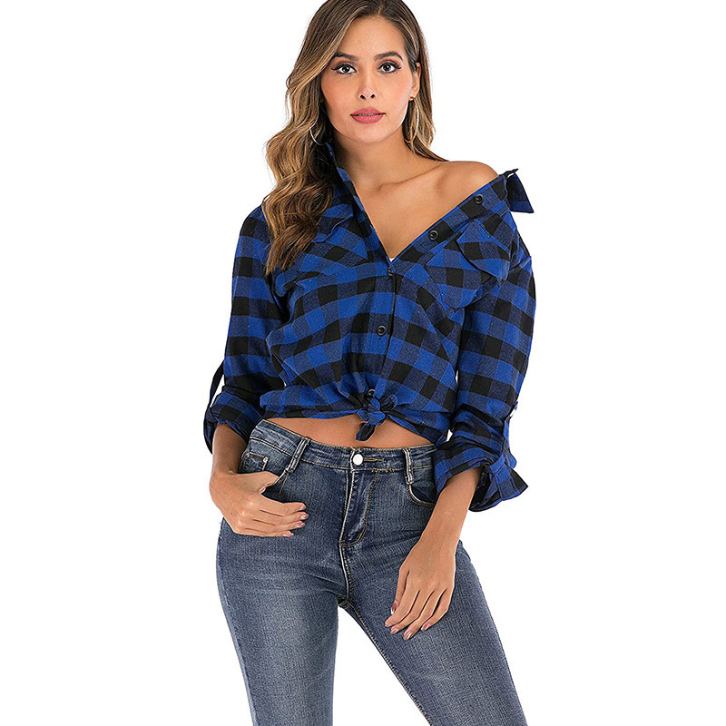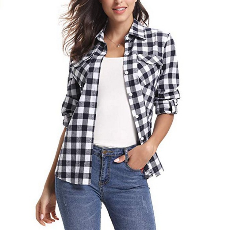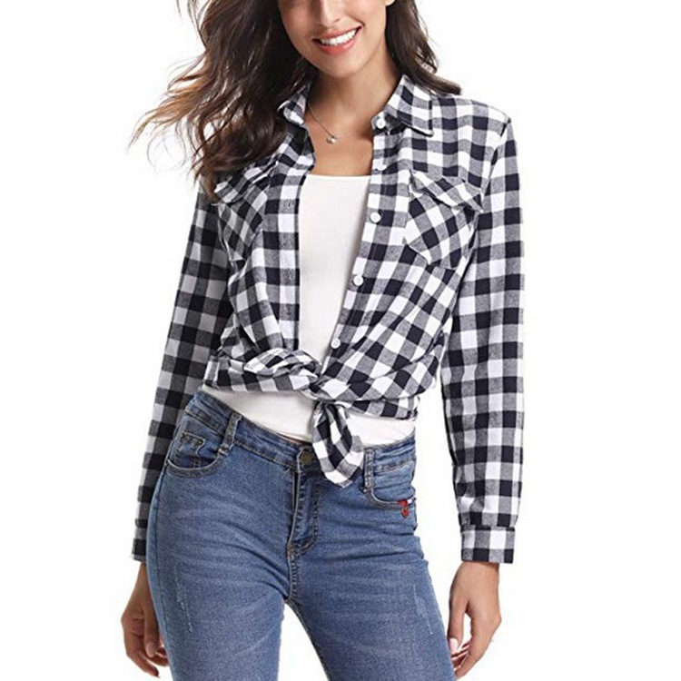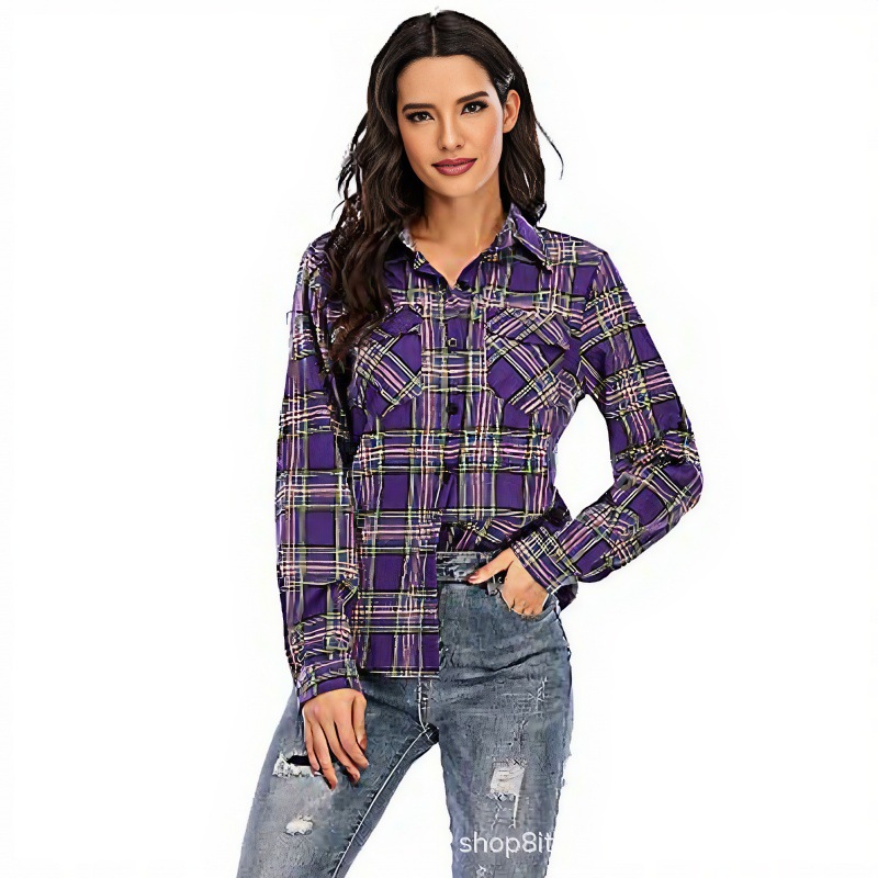 유럽과 미국의 국경 2025 레트로 격자 무늬 여성 올 매치 옷깃 캐주얼 패션 긴팔 셔츠 재킷스토어 가기