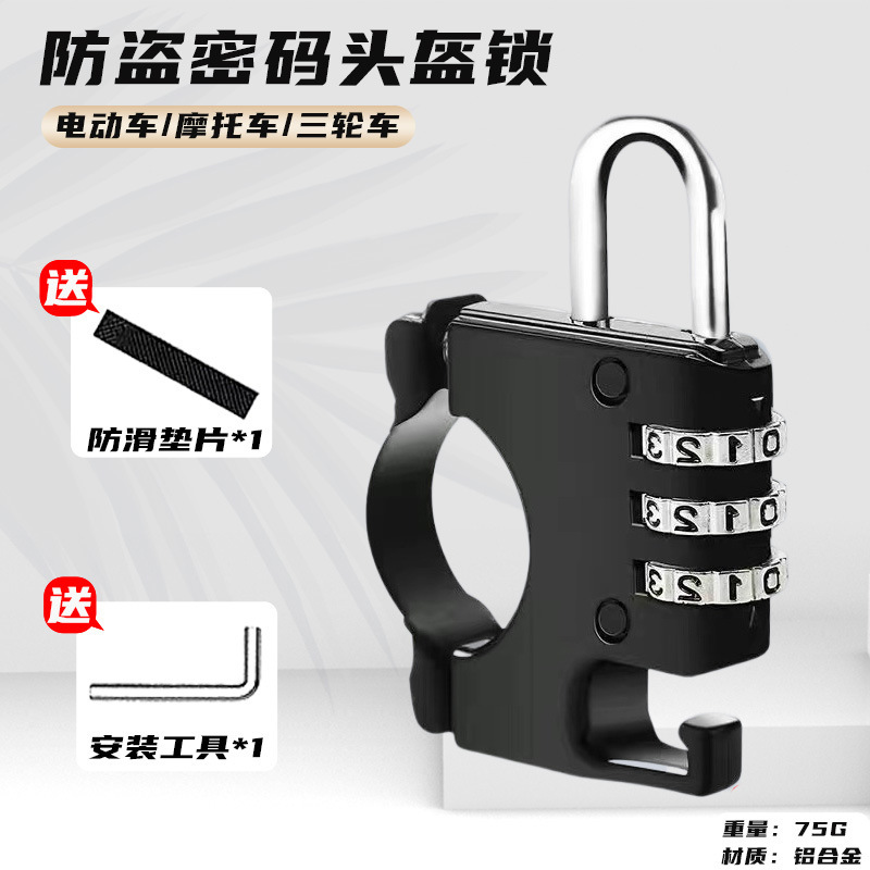 • 3자리 비밀번호 헬멧 자물쇠 [블랙]
