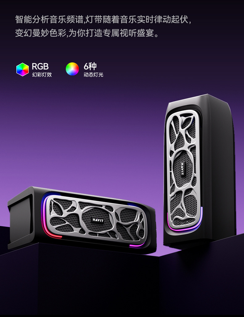 휴이트 RGB 빛나는 데스크탑 컴퓨터 오디오 데스크탑 긴 휴대용 서브 우퍼 높은 전원 블루투스 스피커