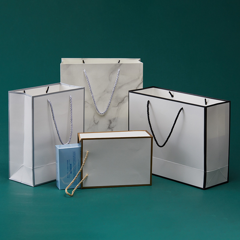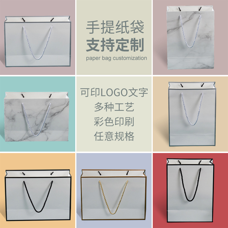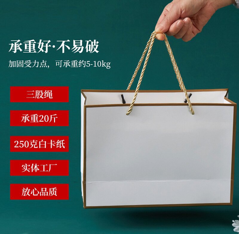 스팟 화이트 카드 핸드백 크래프트 종이 가방 사용자 정의 단색 의류 하이 엔드 두꺼운 포장 선물 포장 가방 인쇄