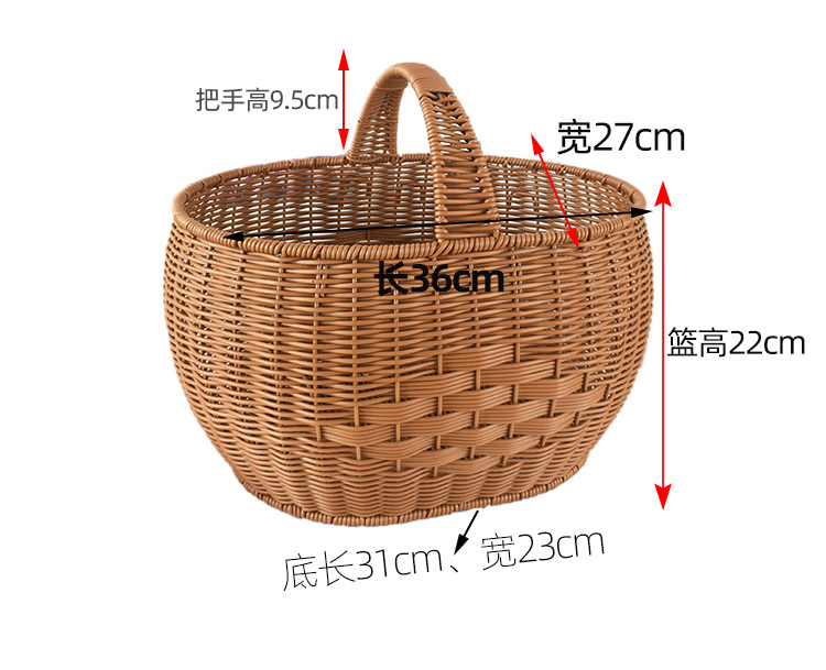 • #¥%&*+브라운 타원형 야채바구니 36x27x22cm