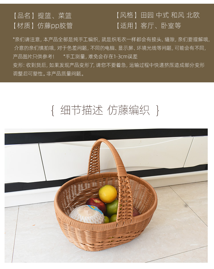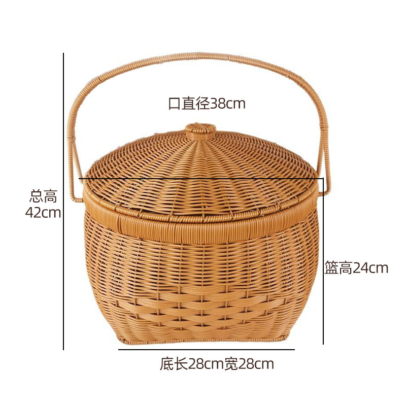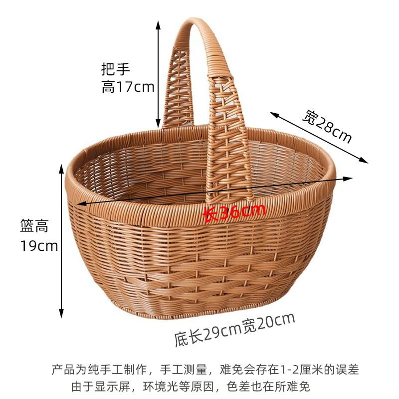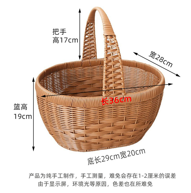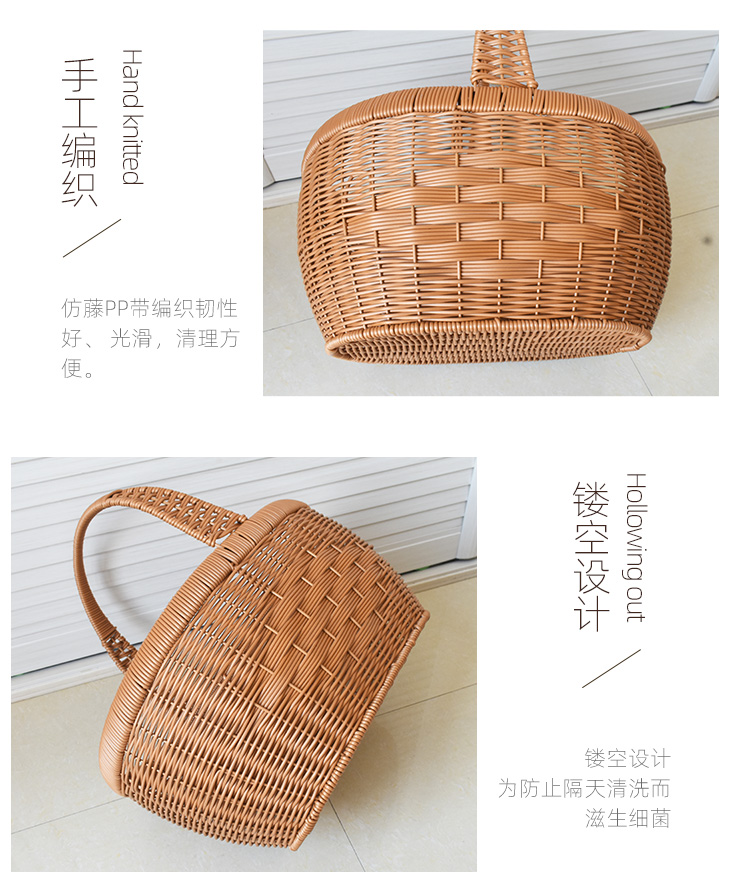 W1TR 타원형 대용량 휴대용 짠 저장 바구니 따기 과일 및 야채 바구니 야외 피크닉 나들이 스낵 바구니 물
