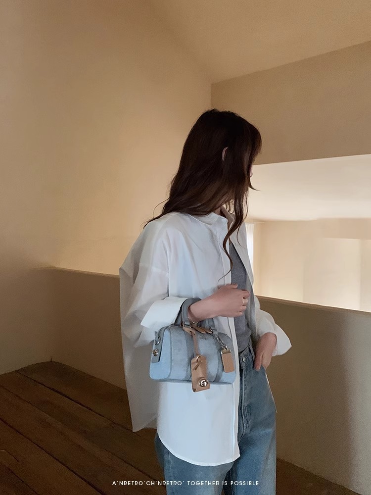 사우스 스타일 트렌디 한 플래티넘 블루 바다 베개 가방 여성의 2025 새로운 올 매치 핸드백 패션 하이 엔드 어깨 크로스 바디 백스토어 가기
