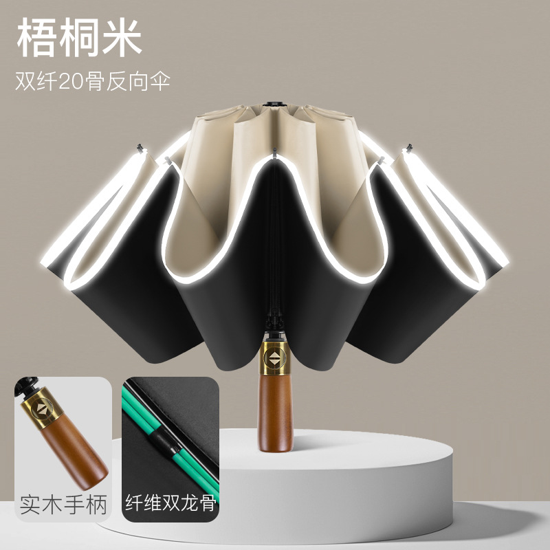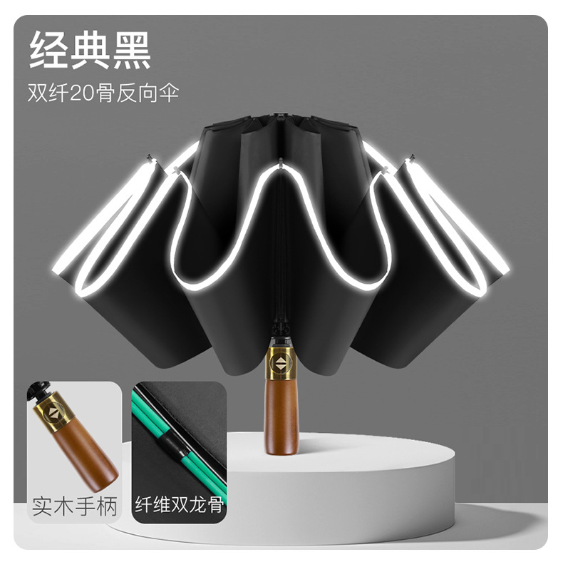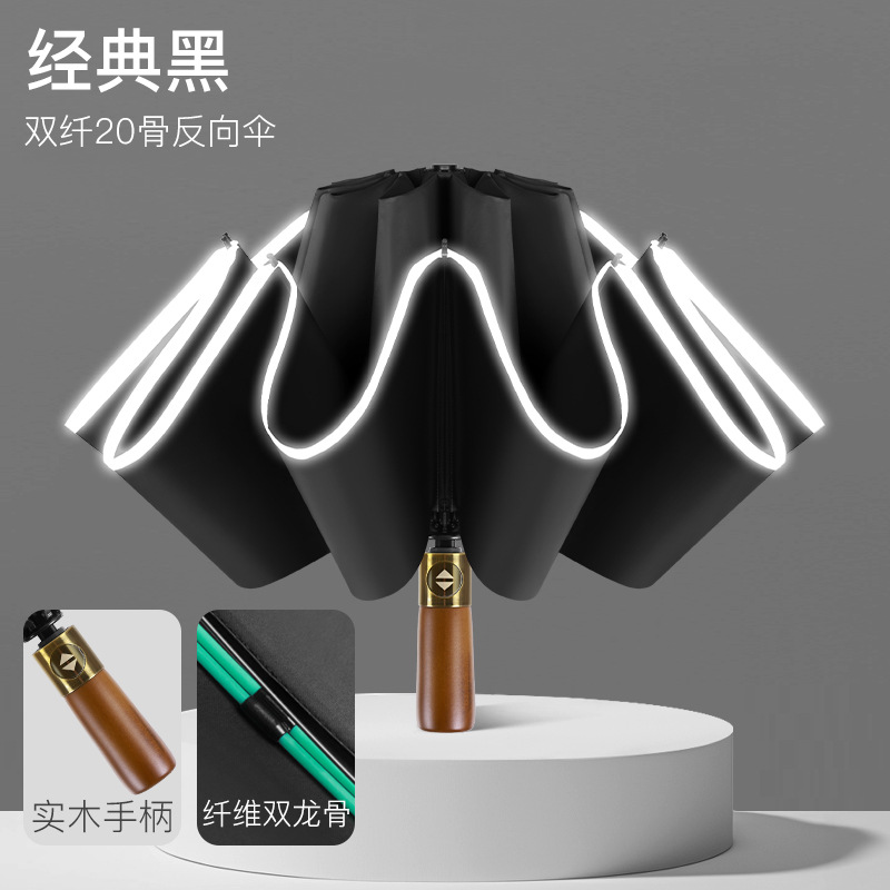자동 검은 고무 역 우산 역 자동차 우산 접히는 대형 강화 두꺼운 나무 손잡이 야외 대형 우산 재고
