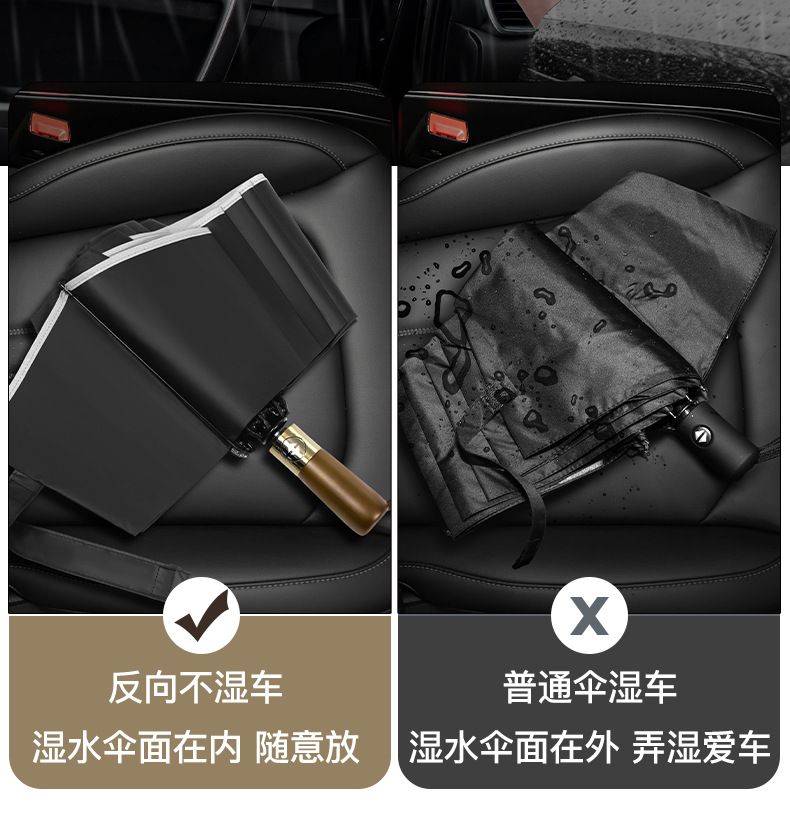 자동 검은 고무 역 우산 역 자동차 우산 접히는 대형 강화 두꺼운 나무 손잡이 야외 대형 우산 재고스토어 가기